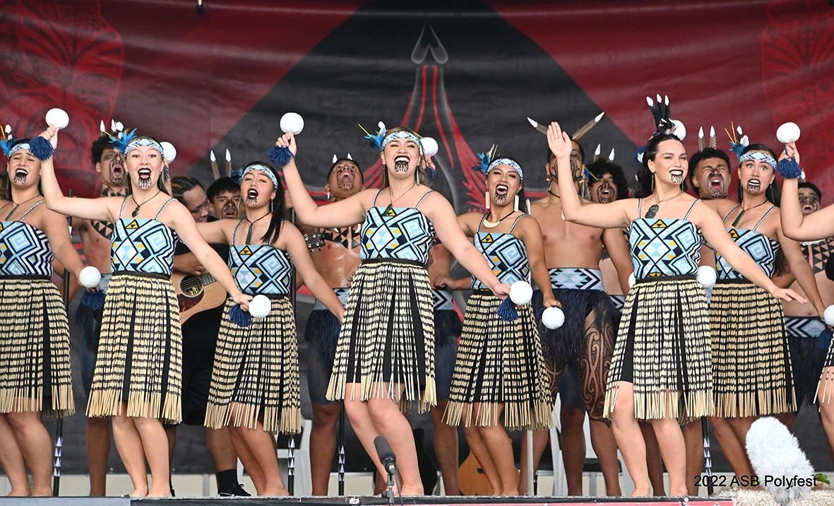 이해를 돕기 위한 뉴질랜드 고등학생들의 kapahaka 공연 사진