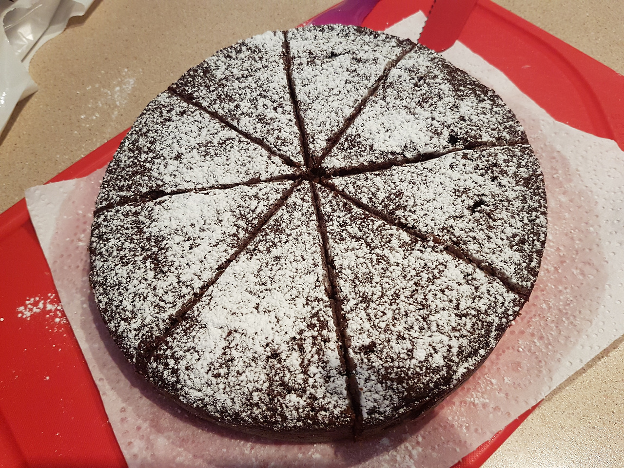 글루텐프리 가루와 아몬드가루로 직접 만든 케잌들, 왼쪽부터 바나나케잌, 치즈케잌, 초코케잌