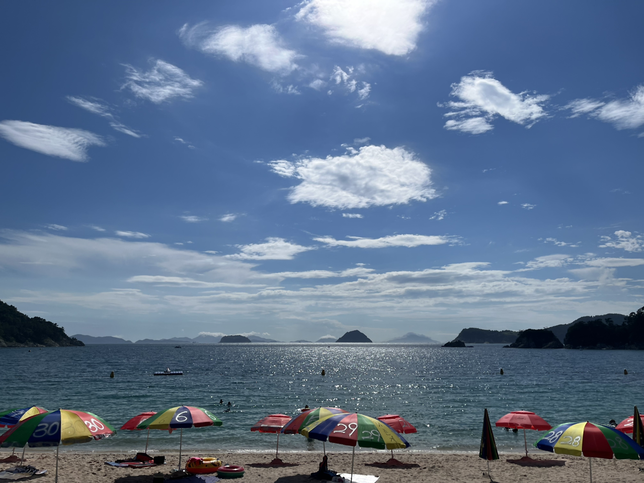 비진도 해수욕장은 햇살이 반짝이고, 물이 깊다. 둥둥 떠있기 제격이다.