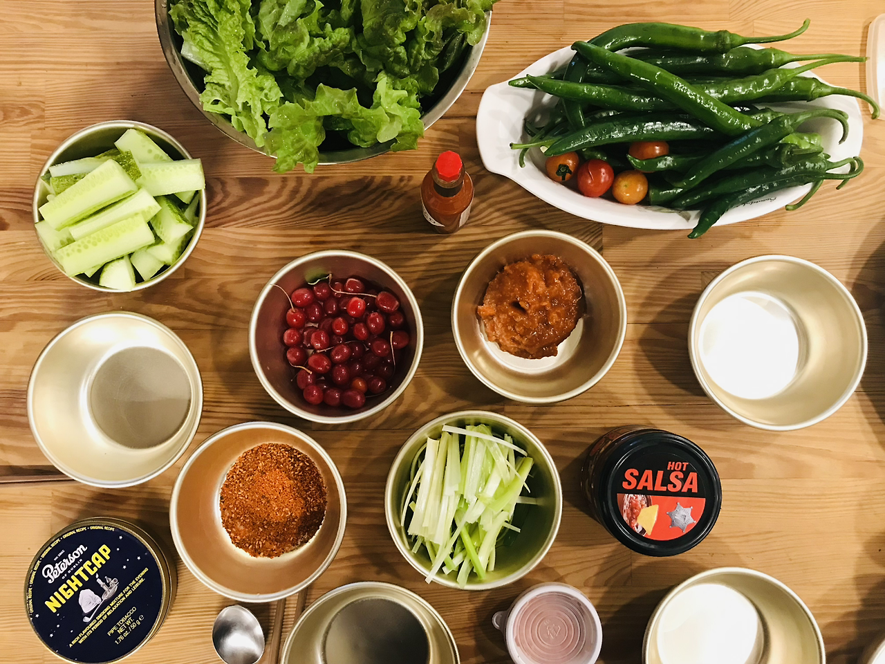 겨울에는 거실 난로에 불이 꺼지지 않도록 종종 연료를 채워주어야 한다. 거실 조명은 시의적절하게 세팅한다, 식사시간에는 밝게. 마당 가운데 모닷불을 피우고 그 옆 그릴에서 숯을 피워 요리를 한다.