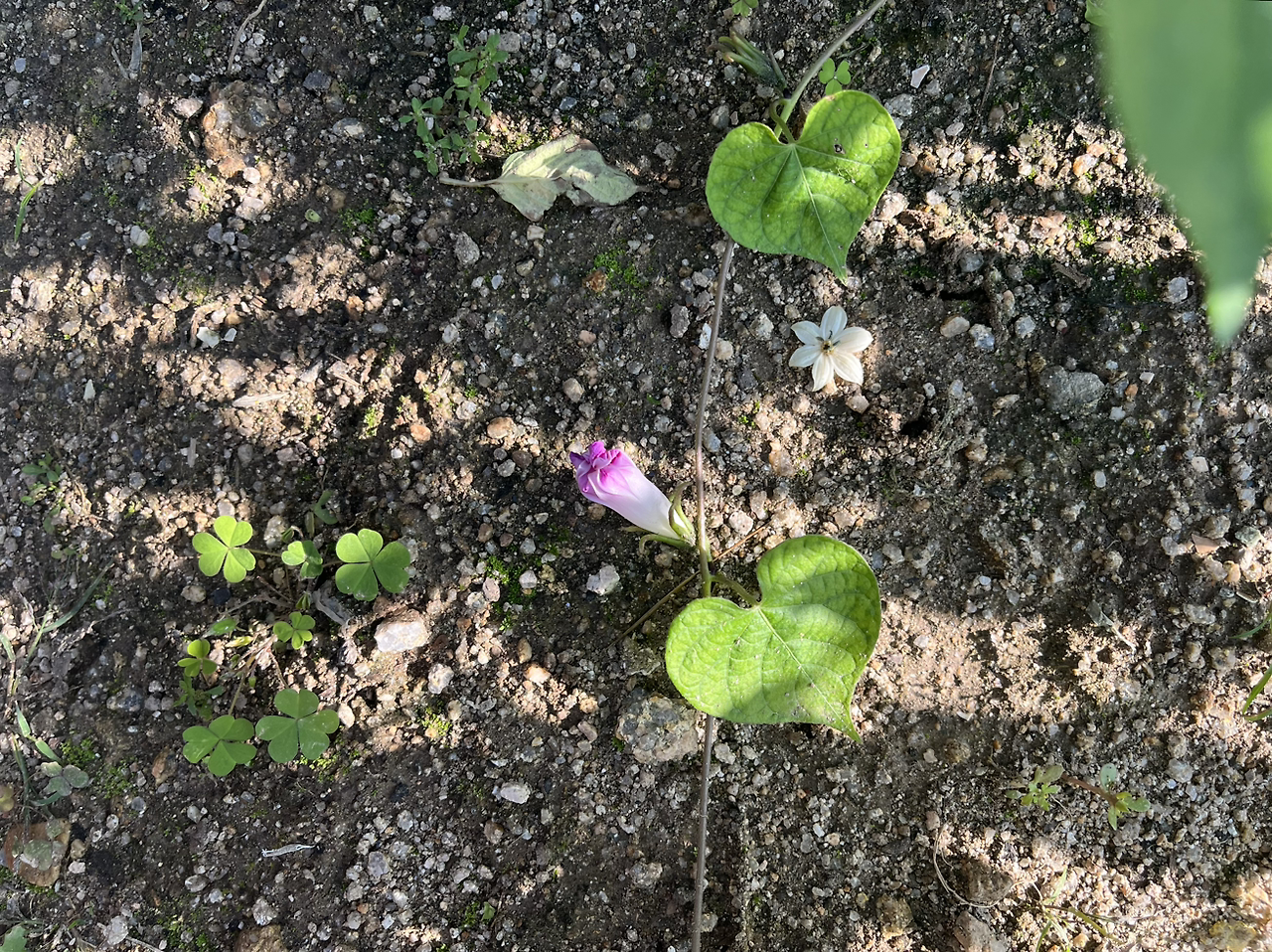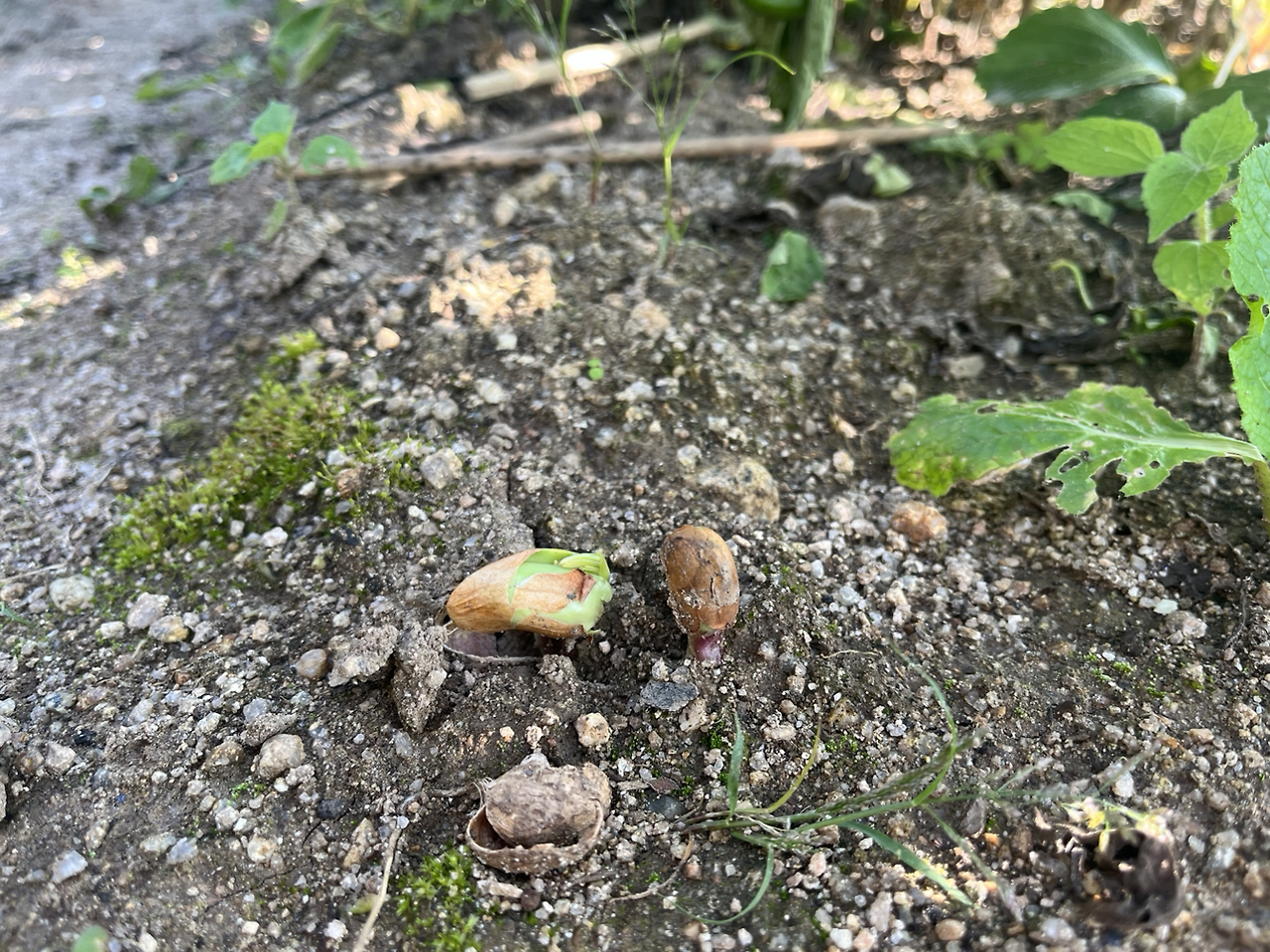 인근 밭의 땅콩 꽃 사진을 찍긴 했지만 캐는 것은 보지는 못했는데, 아무도 모르게 생땅콩이 우리 밭에 와서 자랐다. 이건 콩인데 싶어 가까이 보니, 땅콩의 겉껍질과 속껍질 안에서 자란 새싹이다. 더 귀여운 부분은 우연한 사건으로 겉껍질 안에서 온전한 상태로 두 쌍이 나란하게 자랐다는 것이다. 땅콩을 심을 때 겉껍질채로 심는지 아니면 한 알씩 심는지 잘 모르겠지만 또 확실한 것은 땅콩 심은 데 땅콩이 난다는 것이다. 지금은 얼마나 뿌리가 자랐을 까, 얼마나 큰 모습을 관찰할 수 있을까. 나눔 텃밭의 아쉬움은 매년 추첨으로 새밭을 지정받아서 사용하기 때문에 정해진 기간만큼 한해살이를 한다는 것이다. 더 키워보고 싶은 것이 생겨도 어쩔 수 없다. 몇 년 전에는 작은 올리브나무 모종을 심었었는데, 폐장 때까지 6개월 동안 허리춤까지 자랐었다. 그래서 그 나무를 집으로 들이려고 작전을 세우고 밭을 정리했는데, 하루 혼자 남겨두고 다음날 밭에 가니 덩그러니 서있던 올리브나무를 버려진 것으로 생각하셔서 관리해 주시는 분께서 친절하게 뽑아 바닥에 뉘어 놓으셨던 일이 있었다. 아쉽기는 했지만 그렇다고 집에서 잘 자란다는 보장이 없었어서 덤덤하게 이별을 고했다.
