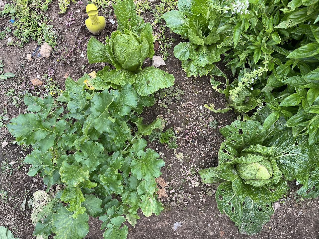이번에 만난 이웃 밭의 아저씨는 식물들을 정말 잘 가꾸셨기 때문에 그걸 지켜보는 재미도 있었다. 질서 정연하고 빈틈없는 그곳과 우리 밭을 같이 보자면 그와 같은 우연이 또 없을 정도로 대조적이었다. 부지런하게 날에 따라 맞춰지는 세심-수동텃밭시스템, 우리는 없는 식물들과 그 꽃들을 구경하고 덩달아 우리 식물들도 잘 돌보았고, 집에 가져와서 꽃병에 꽂아두기도 했다. 따라온 곤충들 달팽이와 애벌레, 풍뎅이를 다시 놓아주는 일도 해야 했다.