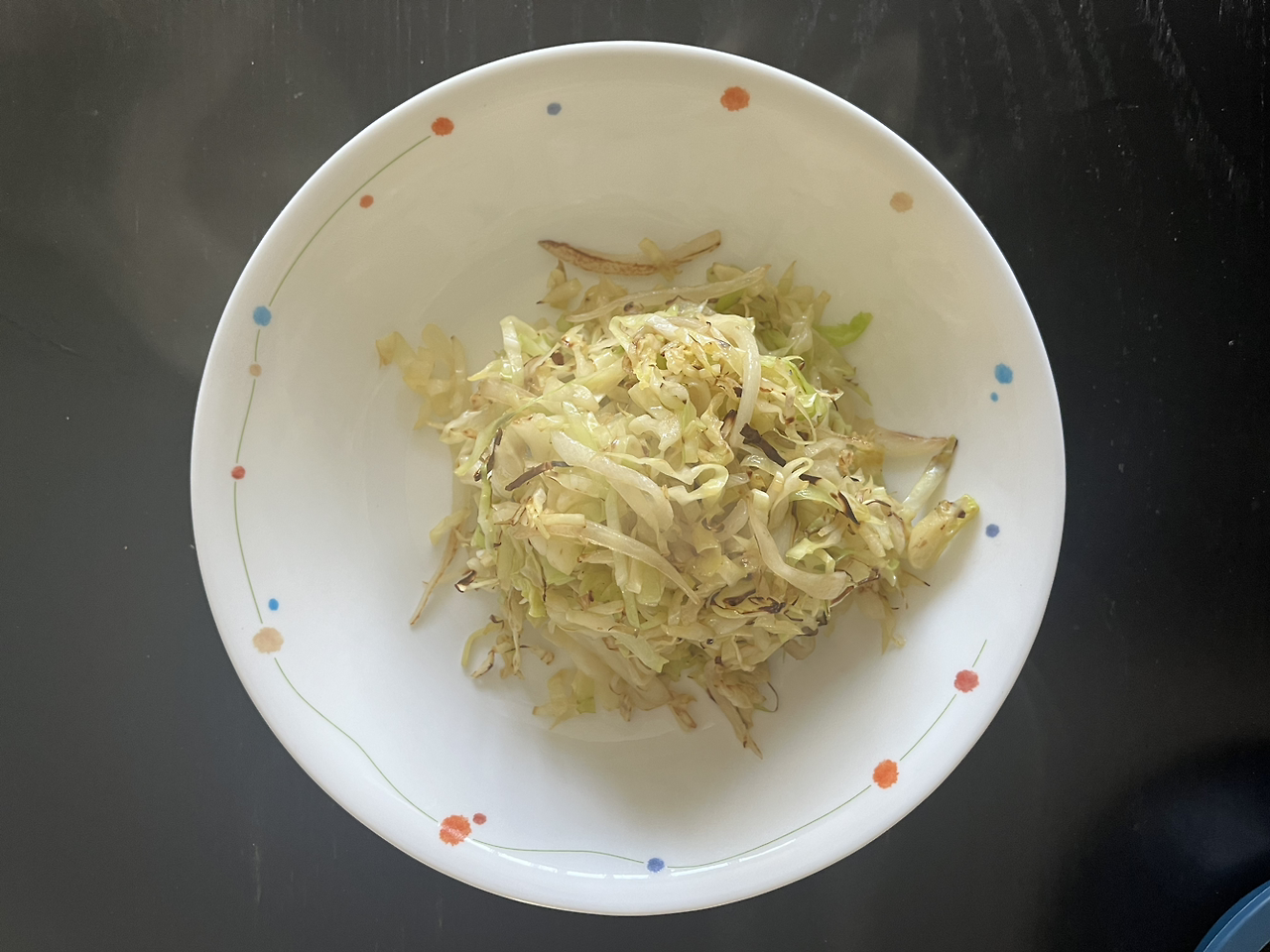 양배추를 얇게 채 썬다. 센 불에 팬을 달궈 양배추를 올리고 올리브 오일을 넣어가며 풋풋함이 가실 때까지 충분히 볶는다. 도시락통에 담는다. 소금을 위에 살짝 뿌린다.