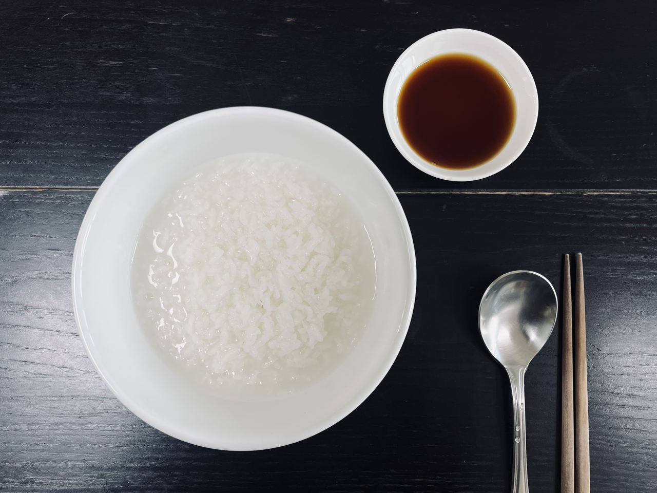 그래서 두 대단한 음식의 만남인 흰죽과 간장은 단순한 조합이지만 강력하다.