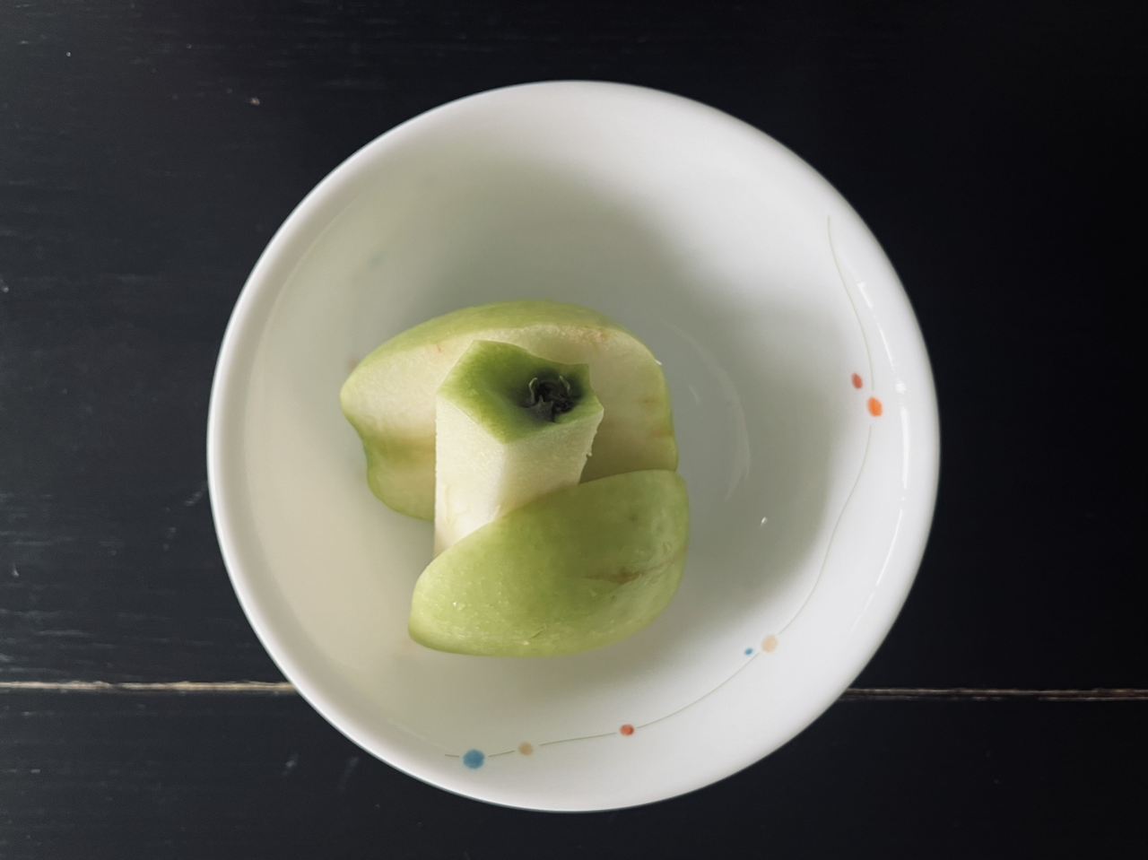 저번주까지는 근처 시장에서 아오리 한 봉지에 9000원 적힌 것을 보고 '헉' 소리를 냈는데, 다행히 조금씩 가격이 내려가는 것을 보았고, 마침 좋아하는 과일가게에 사과가 들어와 있어서 집어 들었다. 사장님은 웃으시면서 "오늘 처음 가져왔어요. 맛이 잘 들었습니다."라고 하셨다. 동네의 믿음직한 과일 가게는 적당한 때에 적정한 가격으로 사과며 채소를 구입할 수 있기 때문에 편안하다. 올해는 유난히 자두, 복숭아, 수박을 실컷 사다 먹었다. 그리고 이제 사과가 나오기 시작한 것이다. 물론 이 청사과는 청량한 여름의 사과다. 한 철 맛볼 수 있는 것이니 신나는 시간을 맘껏 즐길 테다.