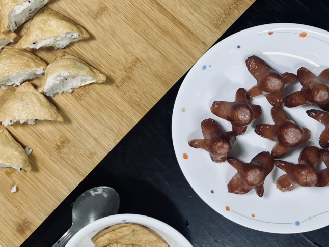 문어 소시지와 유부 초밥의 배치,