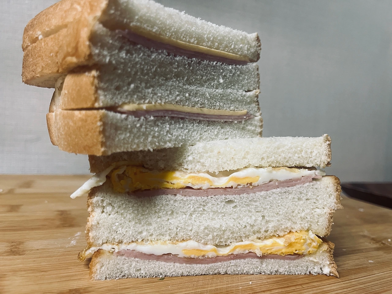 맨 빵에 슬라이스 햄과 치즈 한쪽을 끼워 넣으면 완성됩니다. 입 안을 가득 채운 팍팍함 속에 기어코 잡아낸 부드러움과 짠맛이 매력적입니다. 특별할 것 없던 평범한 순간에 느껴지는 즐거움 같은 것. 굽지 않은 도톰한 빵을 먹고 싶다는 주문이 들어와서 만들어보았습니다.