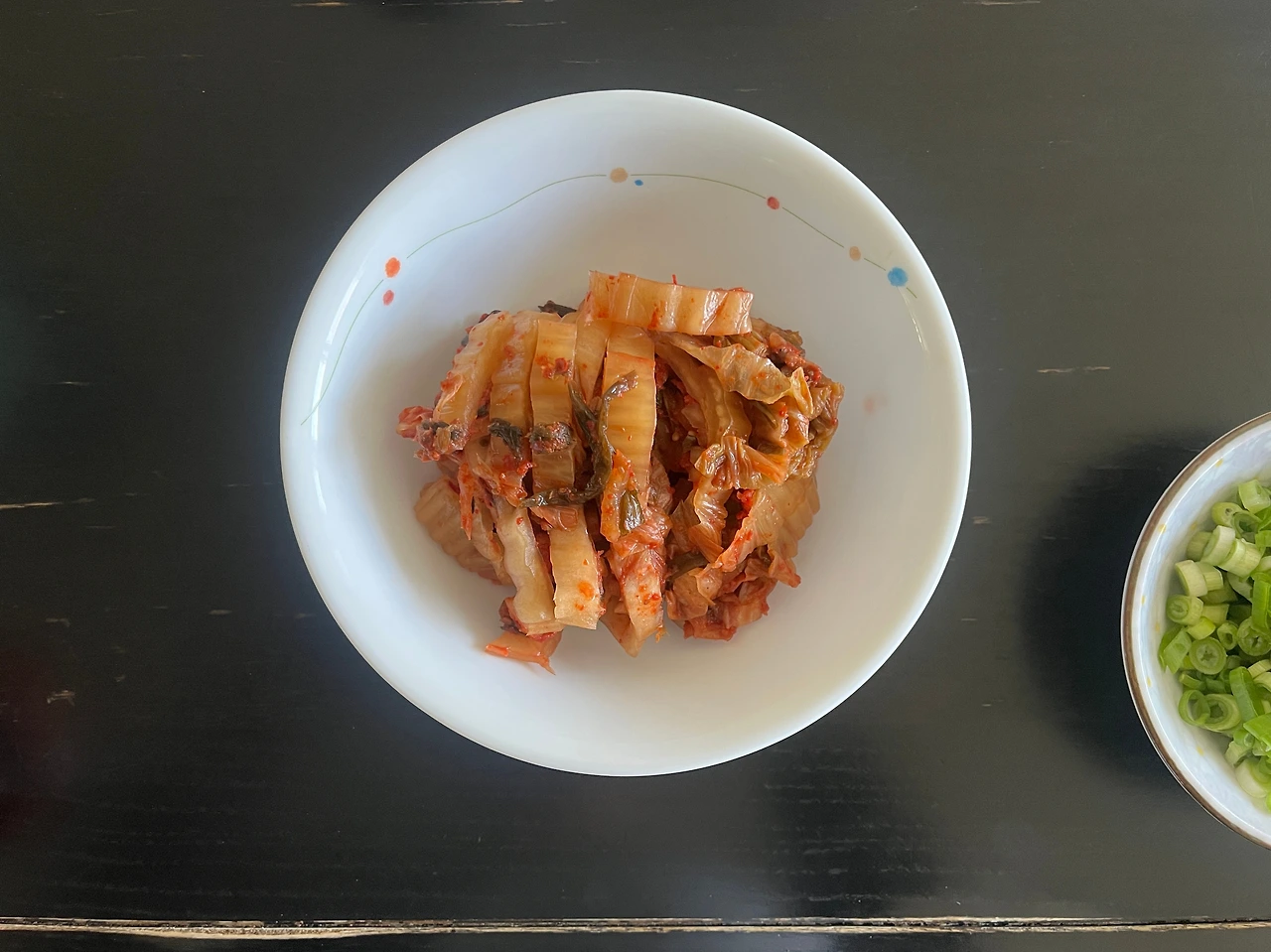 김치는 국수같이 길게 채 썰어서 올려보았습니다.