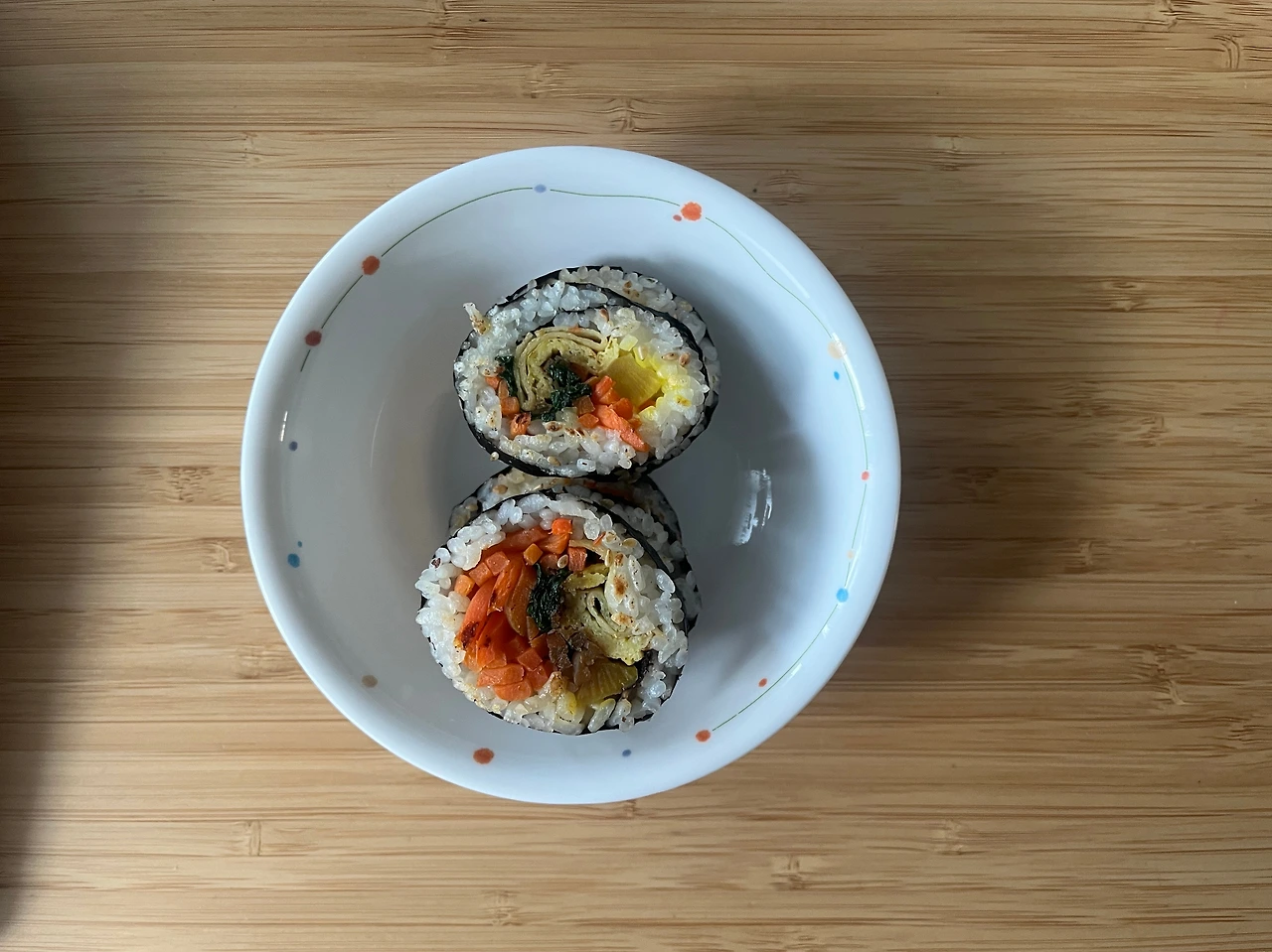 어제는 저녁으로 간단하게 김밥과 따뜻한 보리차를 먹으려고 근처에서 김밥 세줄을 사가지고 집으로 들어가는데, 버스정류장에서 내려 시장길을 걷다가 갑자기 몰아치는 겨울바람에 어쩔 수 없이 편의점으로 들어가 컵라면 큰 컵 두 개를 잡아 나왔다. 영하의 날씨, 겨울을 맞는 방법으로 적당했다. 많이 남아있는 김밥은 보통 달걀물을 묻혀서 고소하게 김밥전을 만드는데 오늘, 아침에 잘 어울리는 메뉴는 김밥구이다. 마른 팬 위에 김밥을 펼쳐 올리고 뒤집기로 살짝 눌러주면서 천천히 굽는다. 냉장고에서 꺼낸 차가운 기운이 물러가고 밥알과 채소들이 눌어서 바삭하기도 하고 쫀득한 식감과 깔끔하고 따뜻하게 구워진 맛을 장착했다.