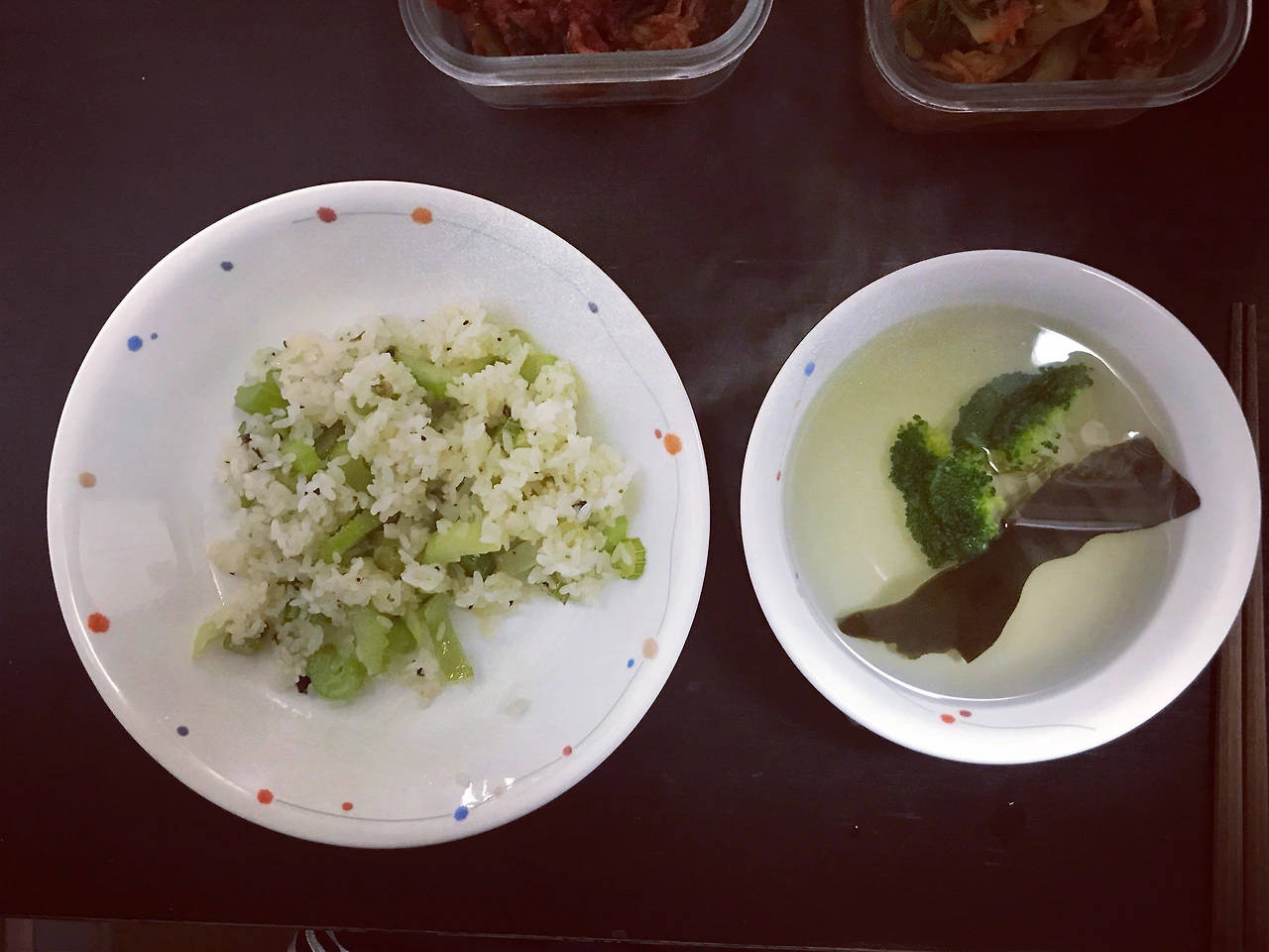 며칠 전 야채수프 하고 남은 셀러리로 볶음밥을 했다. 셀러리 향이 가득하면서 고소하고 짭조름한 맛이다. 셀러리 잎은 다시마 한 조각을 같이 넣고 끓여 소금 간 해서 함께 먹었다. 김장 김치를 곁들였다.