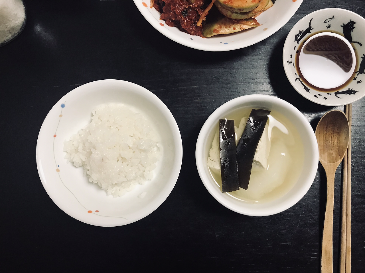 고기나 생선 포 같은 것이 들어가지 않았지만, 시원한 무와 다시마, 그리고 포슬포슬한 두부 맛들을 온전하게 즐길 수 있는 탕이 되었다. 무에는 다시마, 간장, 새우젓 모든 맛이 베어 든다. 국물에는 두부의 맛도 우러난다. 맛이 빠져나간 텅텅한 두부 사이사이 간 베인 국물이 어우러진다. 오래 끓여야 하는 재료가 없으니, 가볍게 준비해서 먹을 수 있다. 어렴풋이 '이건 탕이다.'라고 생각이 드는데, 이유를 분명하게는 모르겠다.
