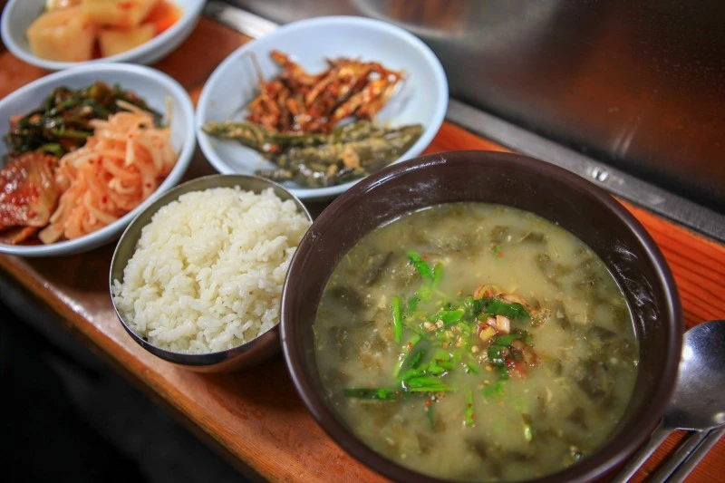 출출해진 배를 안고 서호시장으로 갑니다. 서호시장에는 제가 좋아하는 통영 먹거리들이 가득하니까요. 충무김밥을 포함해 우짜, 꿀빵, 회... 끝도 없습니다. 그중에 저의 원픽은 시락국입니다. 서호시장 원조시락국은 전국에 이름난 시락국 전문점이예요. 메뉴가 시락국밥 하나뿐이죠. 반찬은 직접 담아 먹도록 되어 있어요. 장어와 시래기를 넣고 가마솥에 푹 끓여낸 시래기국인데 통영에서는 시락국이라고 부른다고 하네요. 뜨끈하게 국밥 한그릇 먹고 나니 피로가 싹 풀리네요.