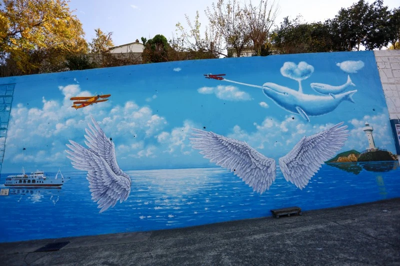 동피랑 꼭대기에 오르면 동피루가 우뚝 서있어요. 이곳이 나폴리를 닮았다는 강구안이 한눈에 들어오는 명당이죠. 동포루에서 내려오면 동피랑 시그니처인 천사날개벽화가 있습니다.