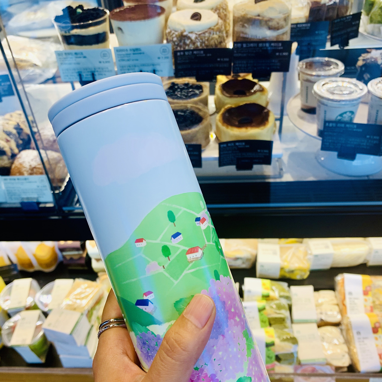스타벅스에 가서 오늘의 커피 그런데를 스벅 제주 한정판 수국 트롤리 텀블러에 담아와 마신다.