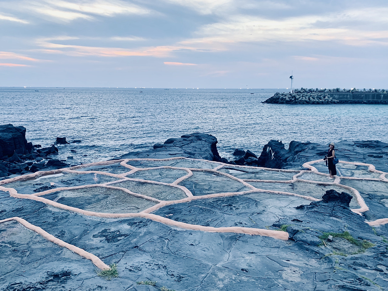 무계획으로 떠났어도 놀 것 천지라 어제는 제주 시내에서 애월까지 서쪽으로 해안도로를 달렸다. 빨강 하양말이 유명한 이호테우 해변을 시작으로 페친이 하는 제주 꽃서점 디어 마이 블루에서 그림책을 잔뜩 샀다. 삼별초의 마지막 항쟁지, 토성에 들러 곽지해수욕장에서 낮잠을 자고 구엄리 돌염전까지.. 사진을 많이 찍고 찍혔다. 지금까지 여행 중 가장 많은 사진을 찍혔으리라. 작은 원테이블 와인바 빅디어에서 우아하게 와인과 스테이크로 마무리.