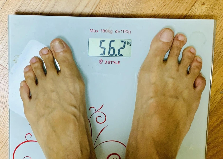 다이어트를 하면서 몸무게를 매일 재지는 않았다. 아침에 몸이 유난히 무겁거나 가볍게 느껴져 몸무게 변화가 느껴질 때만 쟀다. 현재 몸무게는 56.2kg! 올해 초 108배를 시작했을 때 내 인생 최고의 몸무게를 경신했는데 그때는 기록으로 남기지 않았다. 108배 시작하고 초반에 좀 살이 빠졌을 때 재 본 것이 사진으로 남아있는데 61kg이 좀 넘었다. 거의 5킬로그램 이상을 뺀 것이다.