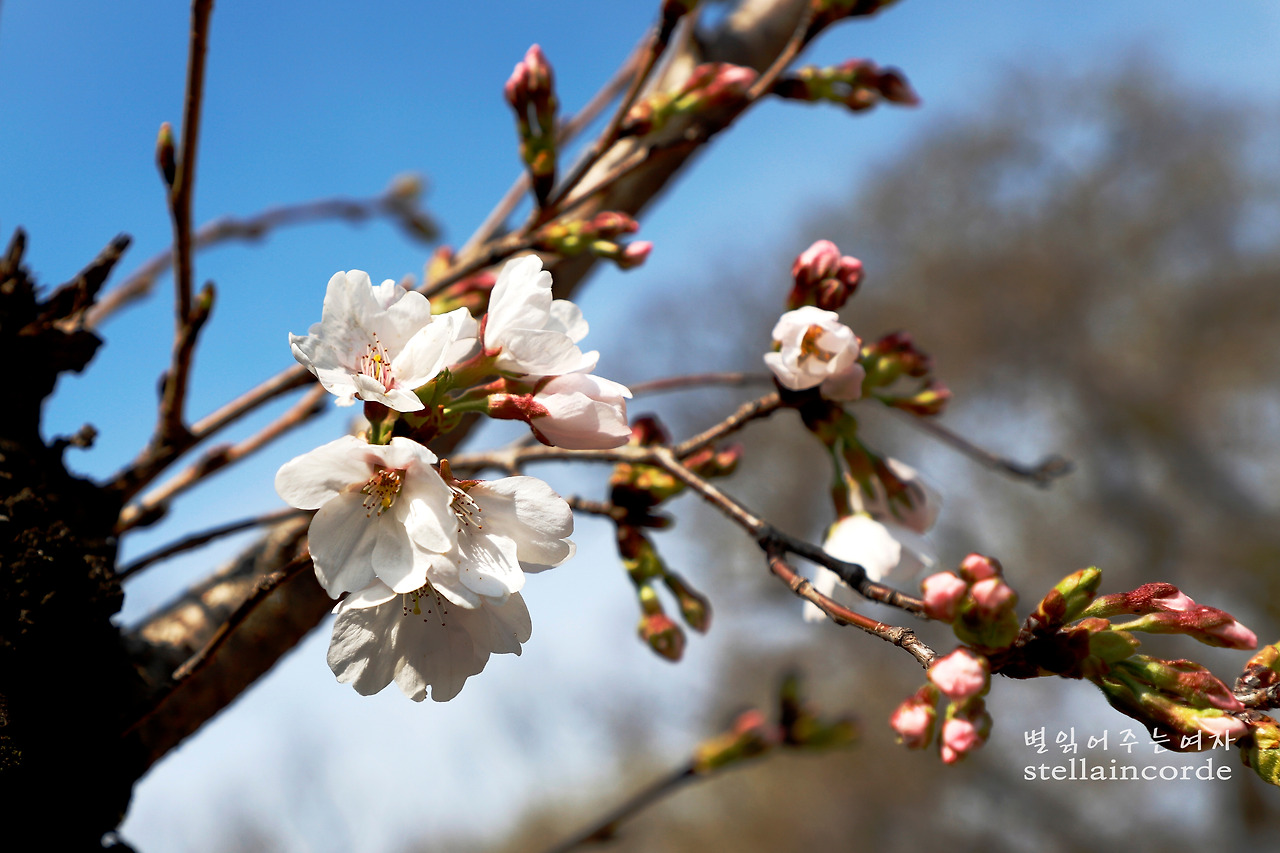 지구온난화로 기온이 높아져 개화시기가 앞서거니 뒤서거니 한다. 동백, 매화, 목련, 살구꽃, 앵두꽃, 벚꽃, 수선화, 개나리, 진달래 등 봄꽃이 순서도 잊고 제멋대로 피어난다. 올해는 꽃샘추위로 4월에도 기온이 영하로 떨어졌으나 그래도 꽃은 핀다. 야리야리한 꽃잎이 세찬 바람에도 떨어지지 않으니 봄의 생명력이 얼마나 대단한가 새삼 깨닫는다. 그래서 사람들이 봄꽃을 사랑하는 모양이다. 서울에도 양지바른 곳에는 목련과 매화와 벚꽃이 피고 진달래와 개나리까지 장관이다.