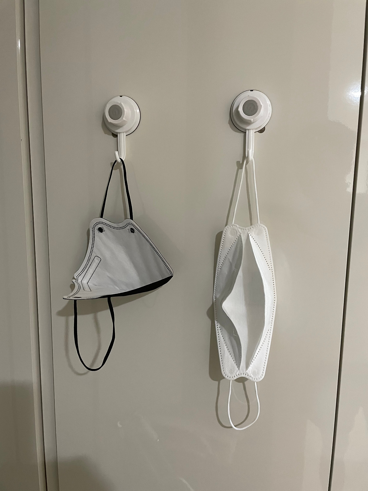 - 설거지 후 고무장갑을 싱크대 위에 두면 안 이뻐 보이기도 하고 물기가 잘 마르지 않을 수 있는데 걸이를 이용하면 두 마리 토끼를 잡을 수 있습니다. 외출 후에 바로 마스크를 바로 걸어둘 수 있게 현관장에도 붙여 놓았습니다.