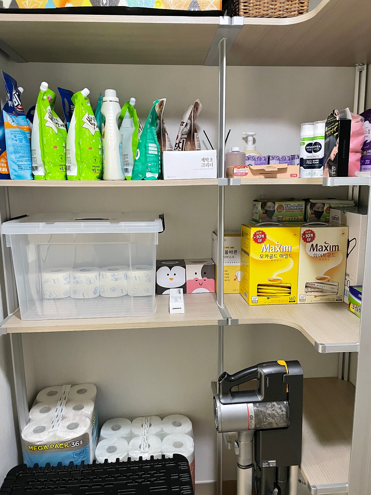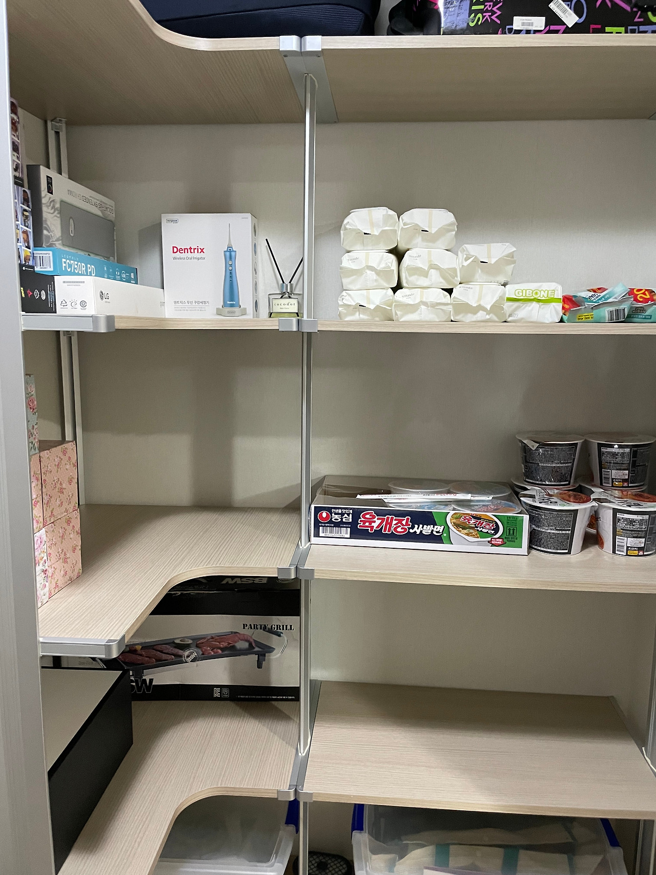 서랍장이나 팬트리 공간을 너무 팍팍하게 채우지 않도록 합니다. 공간의 여유가 있어야 더 깔끔해 보이고 새로운 물건을 구입하였을 때 수납할 수 있는 공간이 있어야 채워 넣을 수 있기 때문입니다.