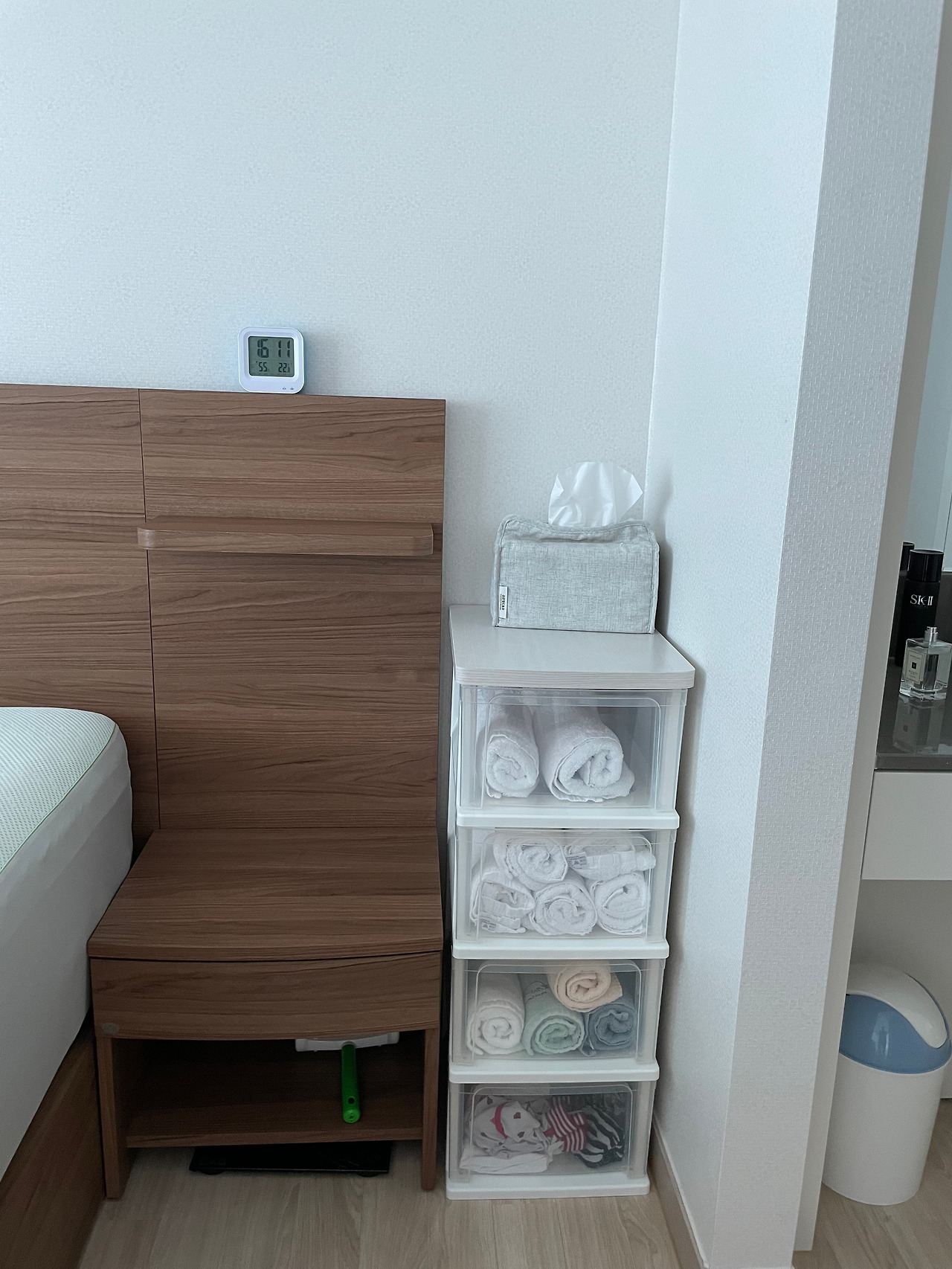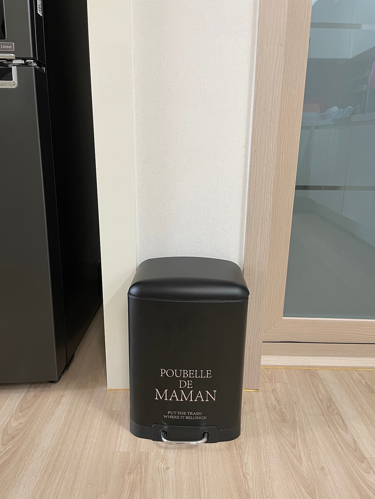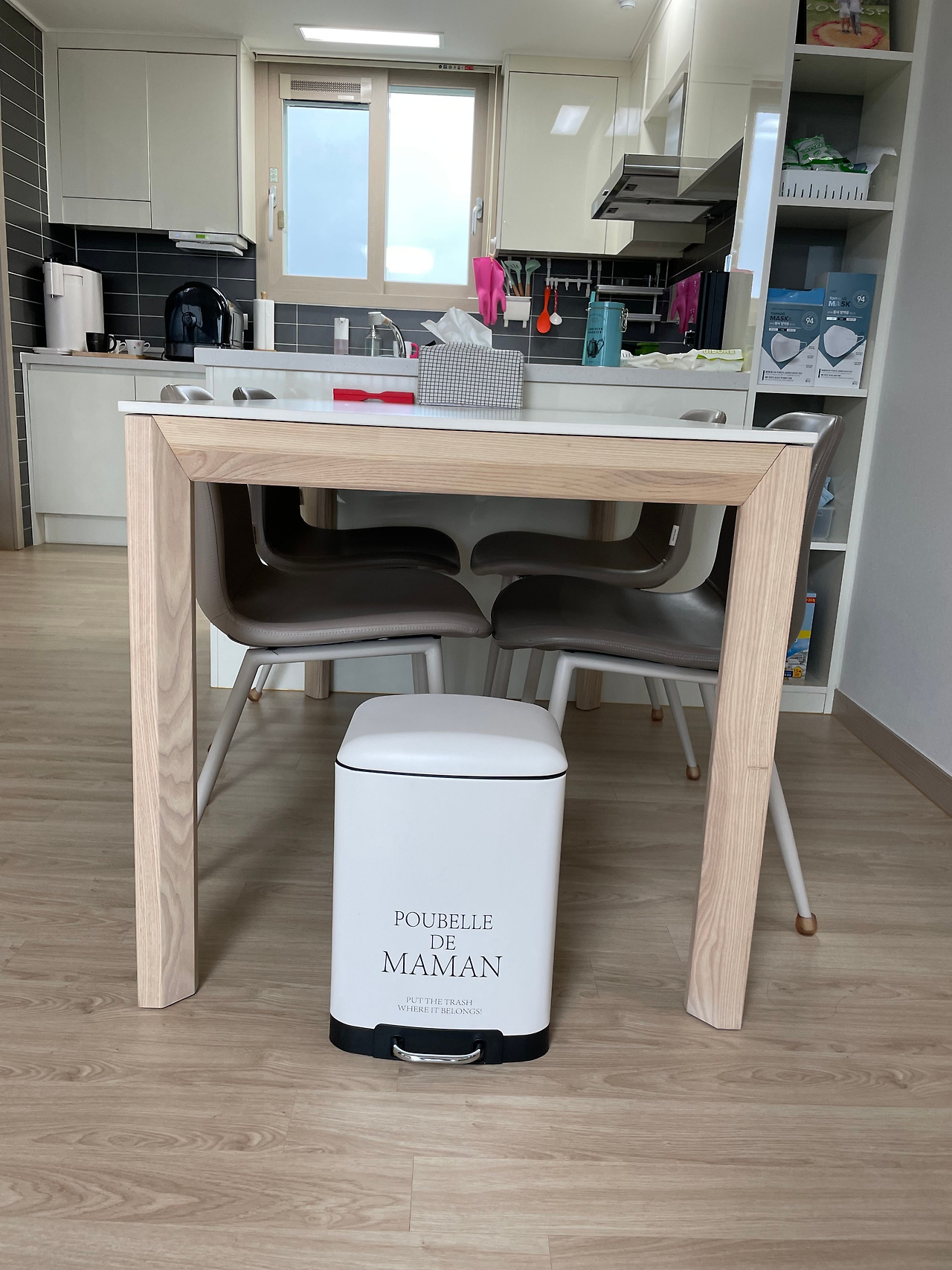 - 이쁜 디자인의 휴지통으로 인테리어 효과를 주었습니다.