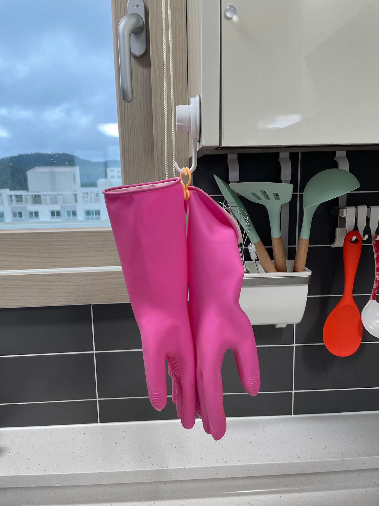 1) 물건 걸이(고무장갑, 수건, 마스크, 키친타월)