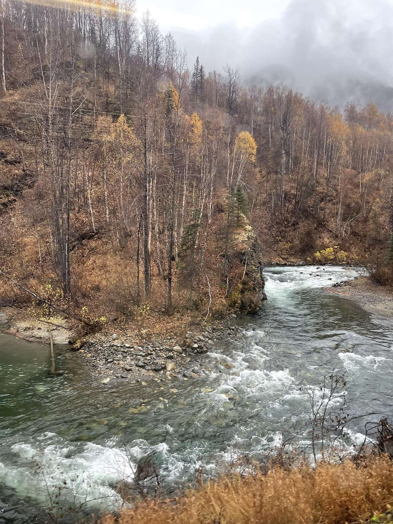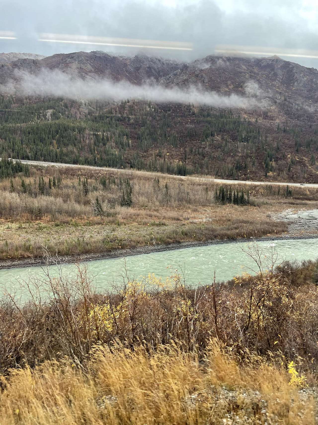 2022년 10월 1일(토) 16:22(출발 8시간 후/도착 4시간 전) 앨러스카 종단 열차 안에서 ’좌물우산‘ 풍광을 즐기면서