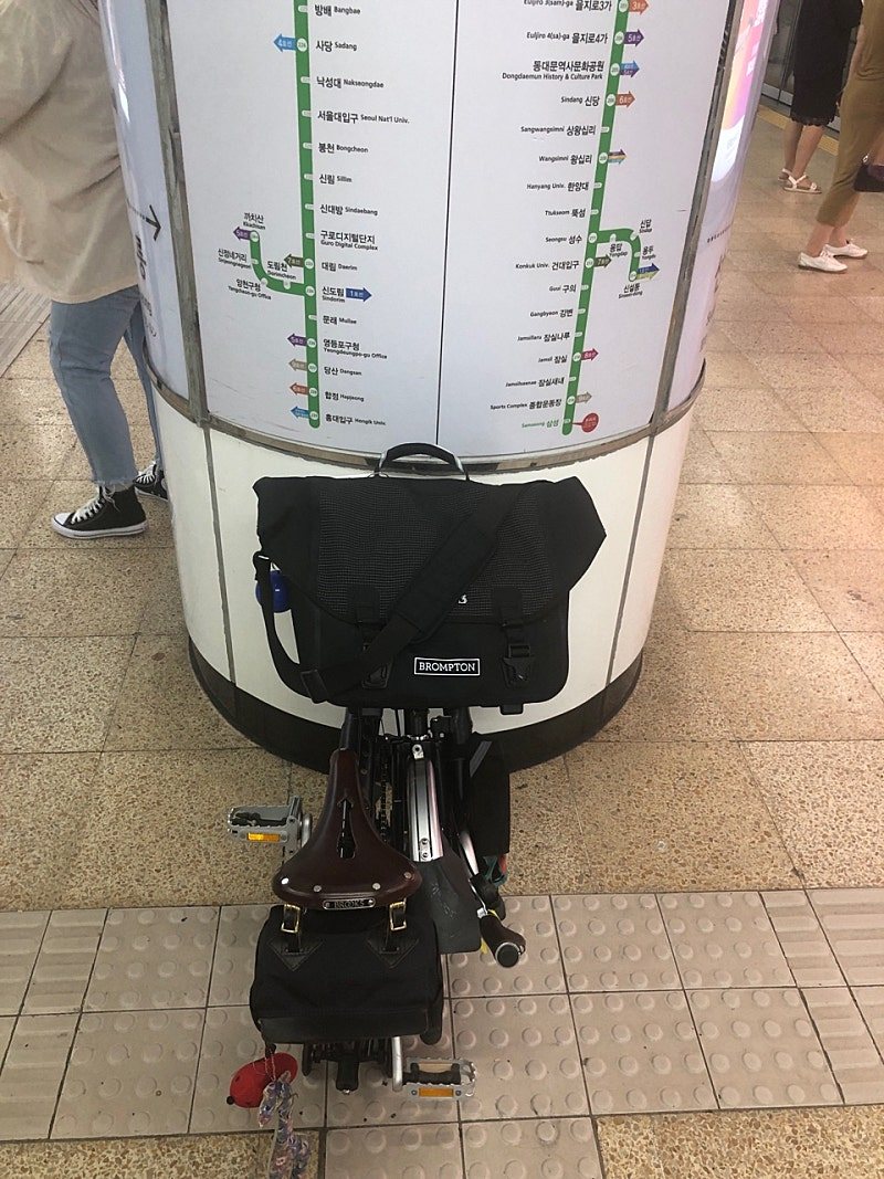 브롬톤 라이딩의 유일한 대화상대인 '팔덕(8 duck)' 친구 헬멧 프로펠러가 도망가지 않게 하는 방법을 세 차례 시도만에 이제 겨우 터득됐다. 뛸 듯이 기쁘다.