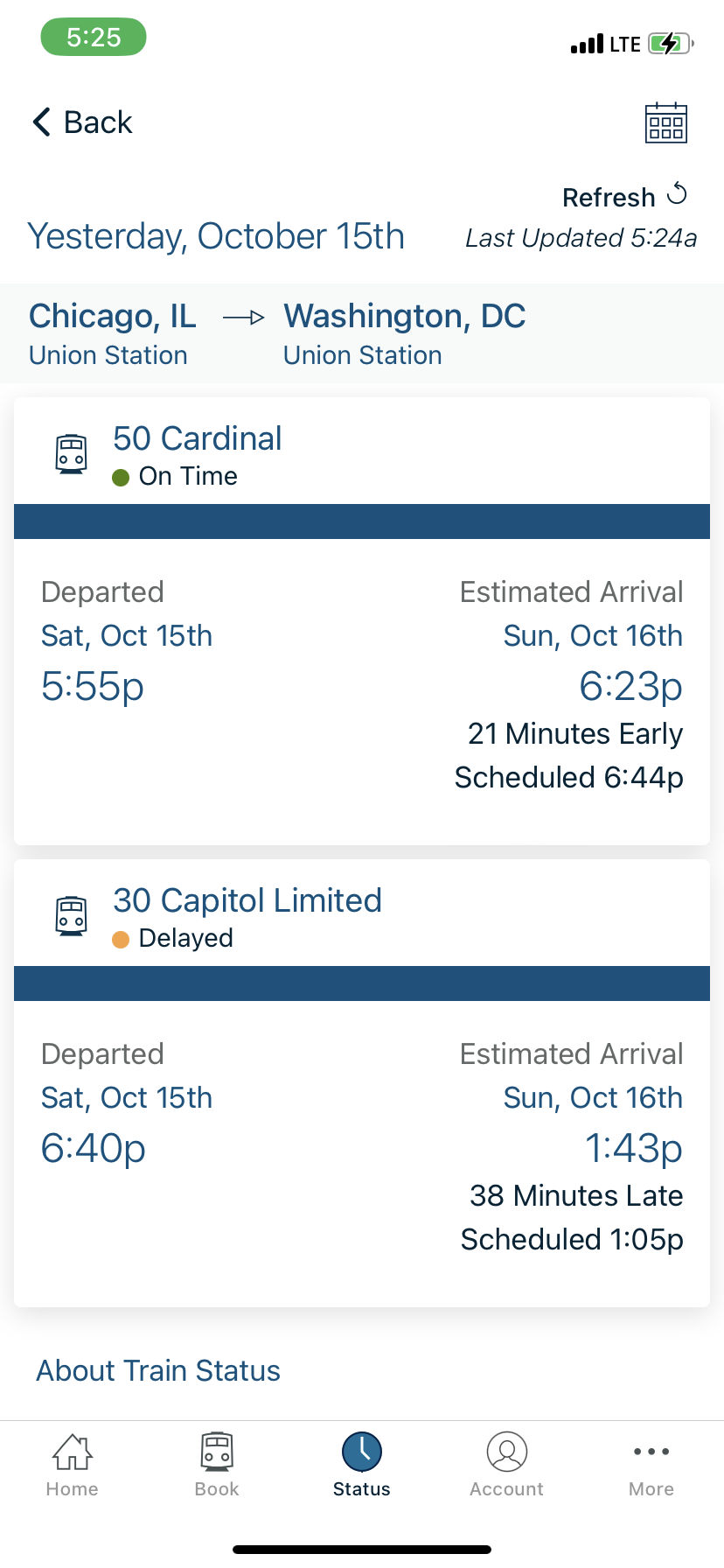 6. 미쿡 암트랙 출•도착시간은 수시로 바뀌고 2시간 연착은 다반사이다. 연계 철도를 이용할 경우, 가능한 충분한 Transit 시간을 확보해야 한다. 덴버역 출발 2시간 반 늦음, 워싱톤 DC역 2시간 연착> 마이애미 연계 시간 겨우 5분 휴! 암트랙 앱과 티켓팅 시 등록 이메일을 수시로 챙겨야 한다. 가장 큰 고민거리는 탑승구와 트랙은 현장에서만 확인이 가능하다는 사항이다. 미리 절대 알 수 없다.
