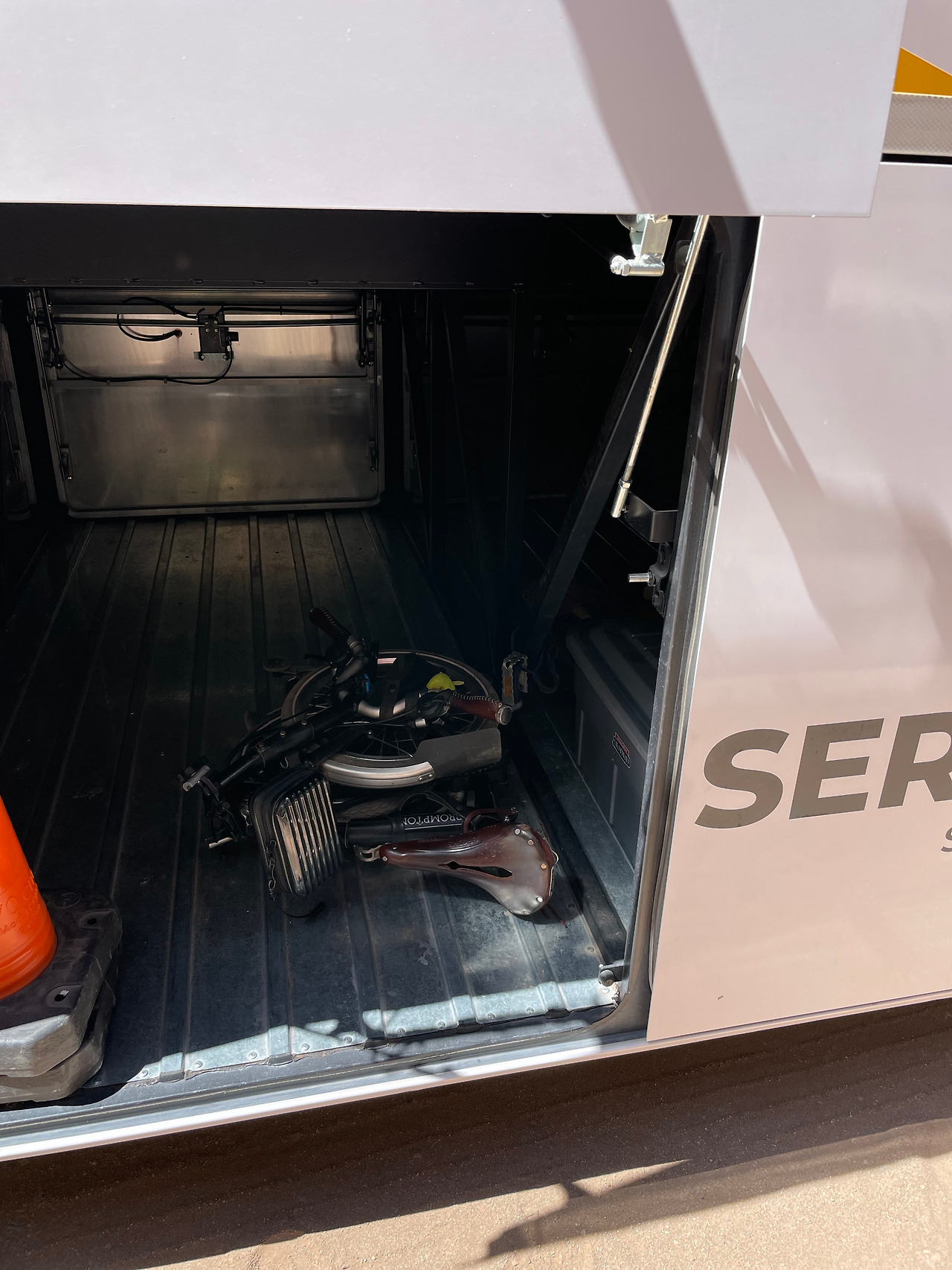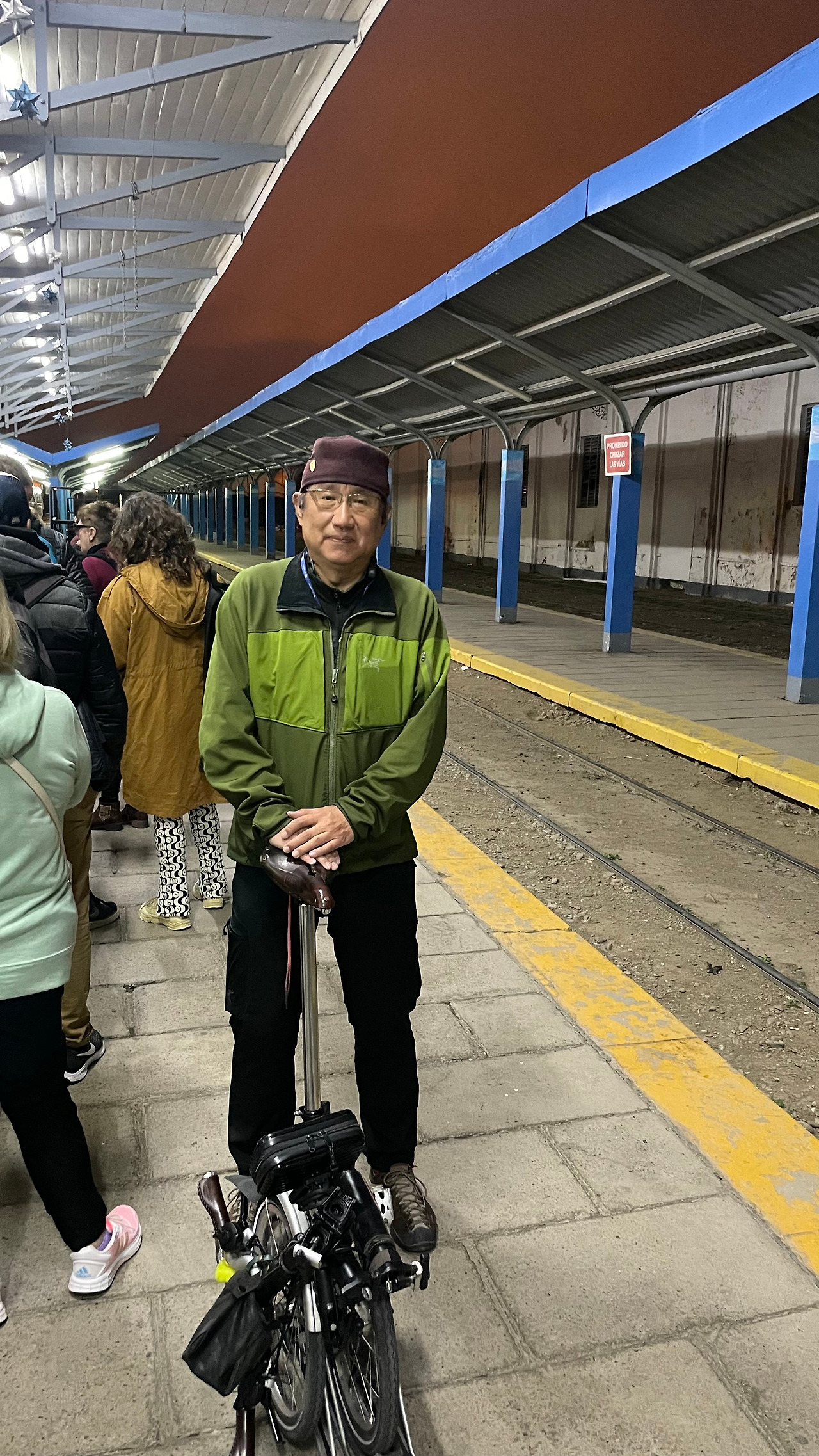 고산열차 출발지(좌측), 버스 짐칸 브롬톤(가운데), 현지 가이드 마테차(우측)