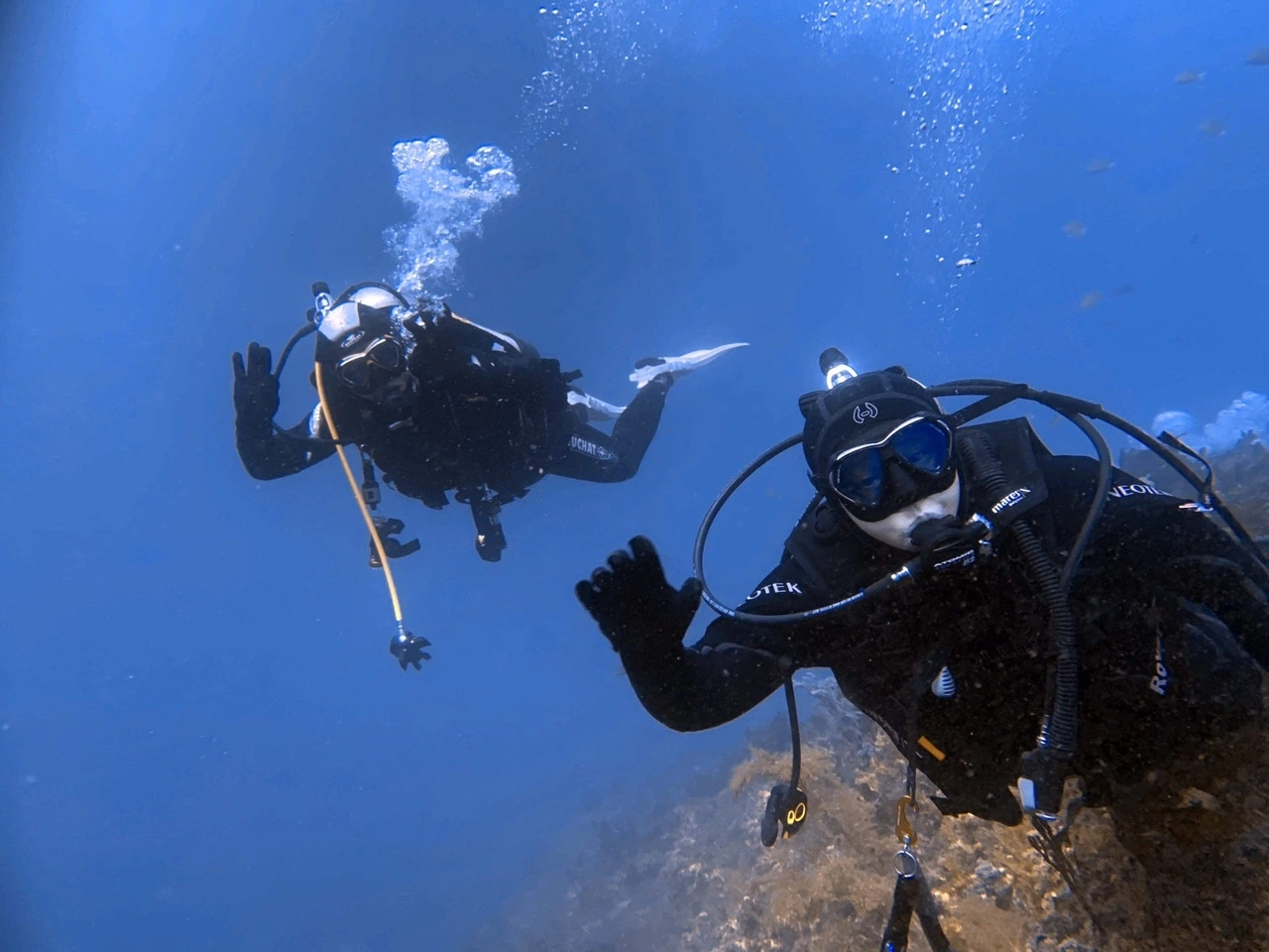《在水下拍摄人物时,潜水员最好屏住呼吸大约2到3秒。》「水中で人を撮影する際、ダイバーは2~3秒ほど息を止めるのが最善です。」