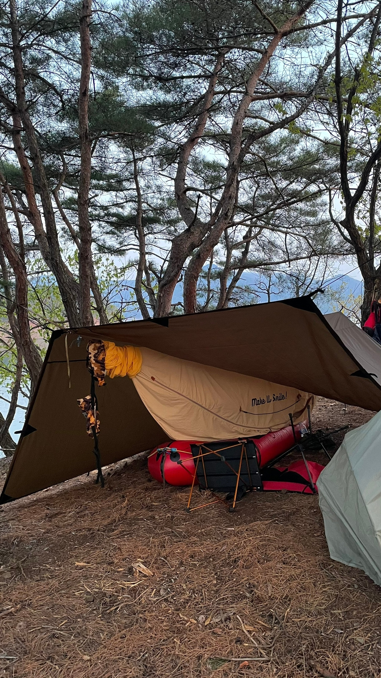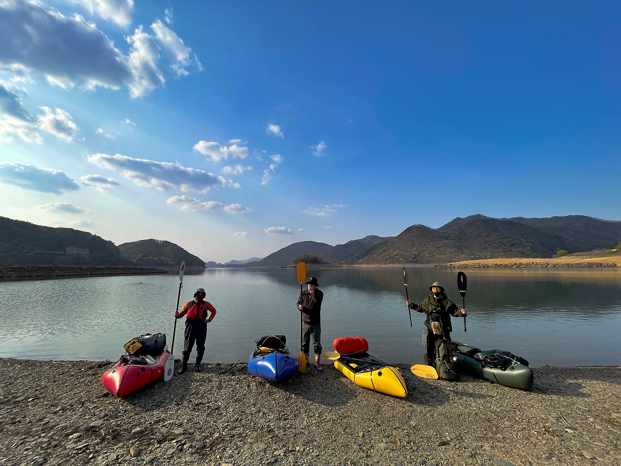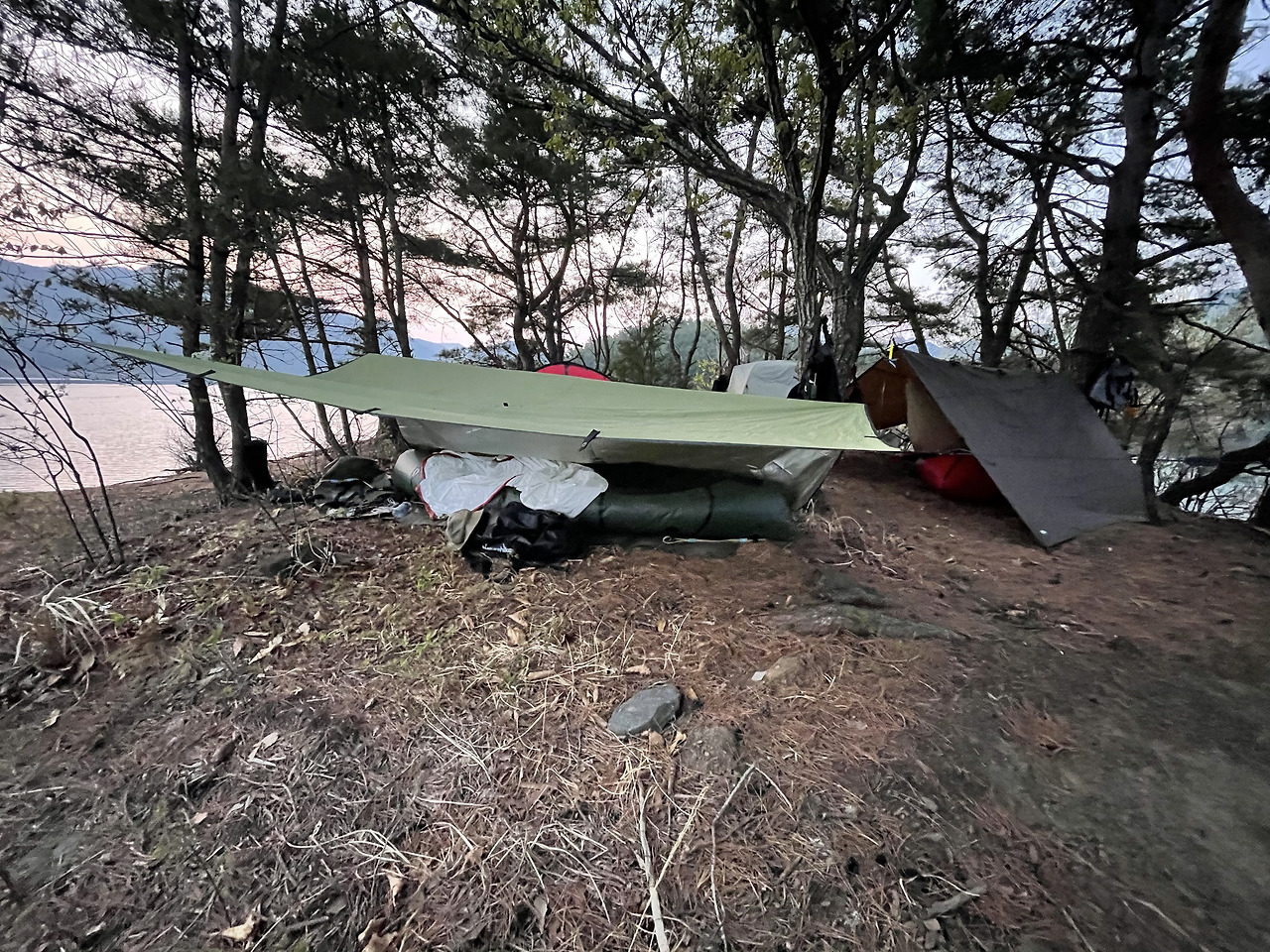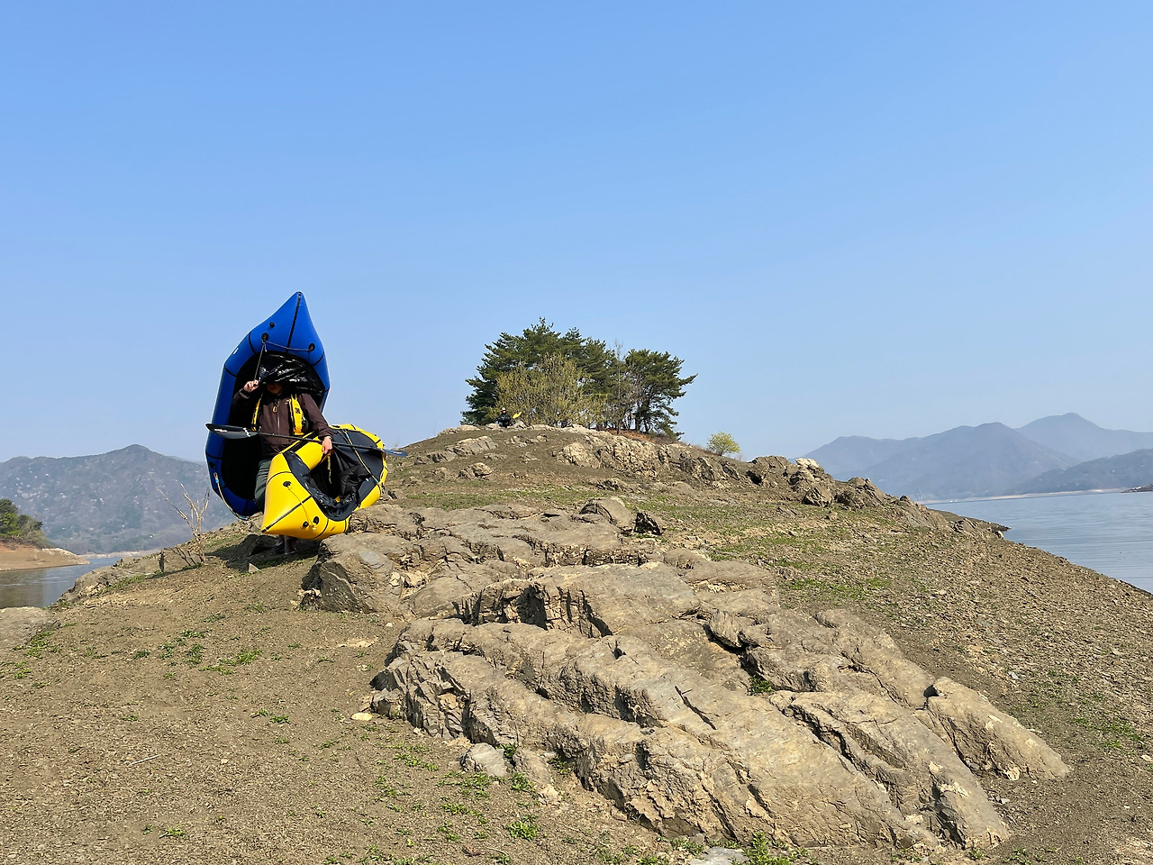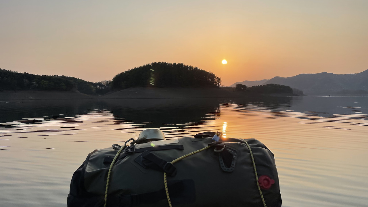 보트를 메고 이고 20여분 걸어 물 위에 띄운 후, 60분 이상 노를 저어 무인도 다람쥐섬에 도착했다. 무공해 별무리 아래에서 불멍과 물멍을 함께 경험했다. 담날 아침은 느지막이 새우만두 라면과 갓김치로 때웠다.