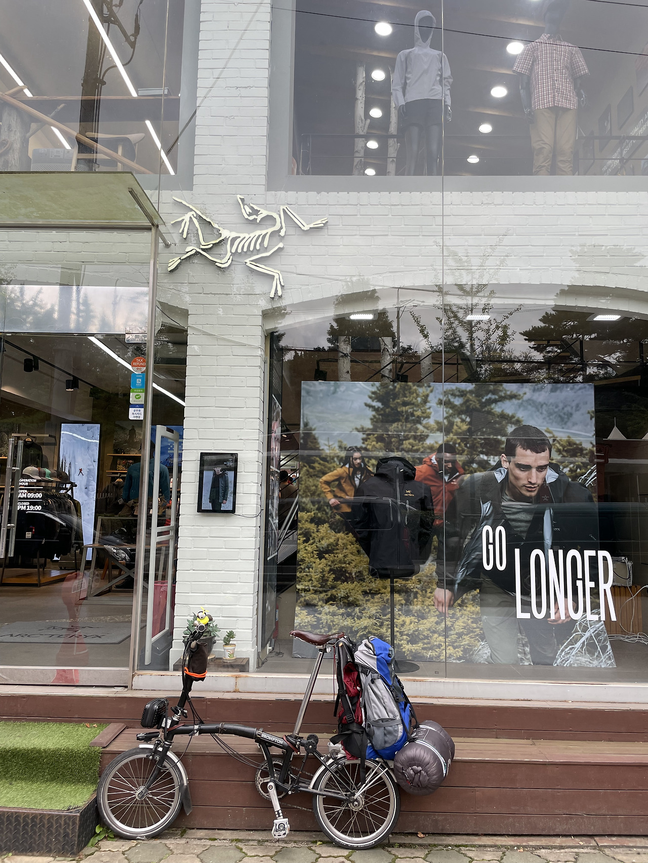 브롬톤 앞뒤 무게배분, 주행감, 세팅의 문제점 등을 오르막 내리막에 중점을 두어 점검하고 평균속도를 체크했다. 내일은 비가 온다고 하니 여행 중 날씨상황과 주행동선을 꼼꼼히 체크해 볼 생각이다. 허리 37인치 이상 바지를 파는 매장에 들러 신상을 둘러보고 몇 개 찜해 놓고 한동안 고민하던 가을겨울용 브롬핑+하이킹 신발과 장갑을 득템 하는 것으로 일과를 마무리했다. #TheFutureIsNow #NormalsNowSpecial #정서적餘裕 #신체적건강