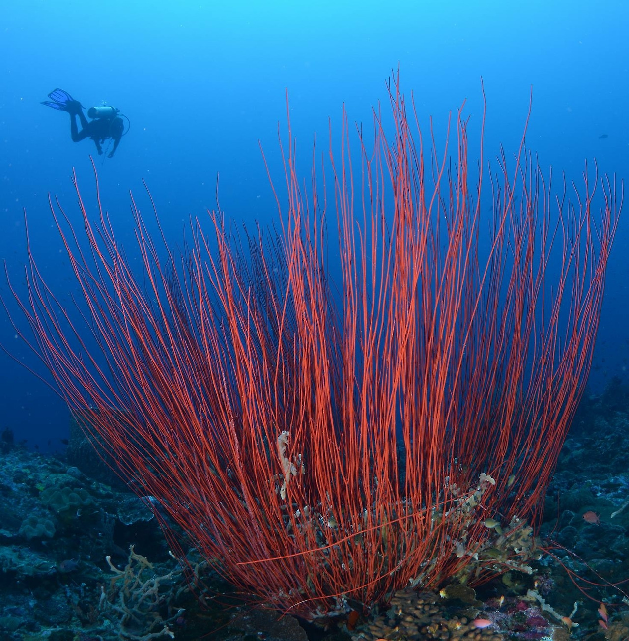 회초리 산호에서 보호색으로 위장한 물고기를 찾기란 쉽지 않다. 더구나 깊은 수심으로 최대 5분이상 체류는 무리이다.