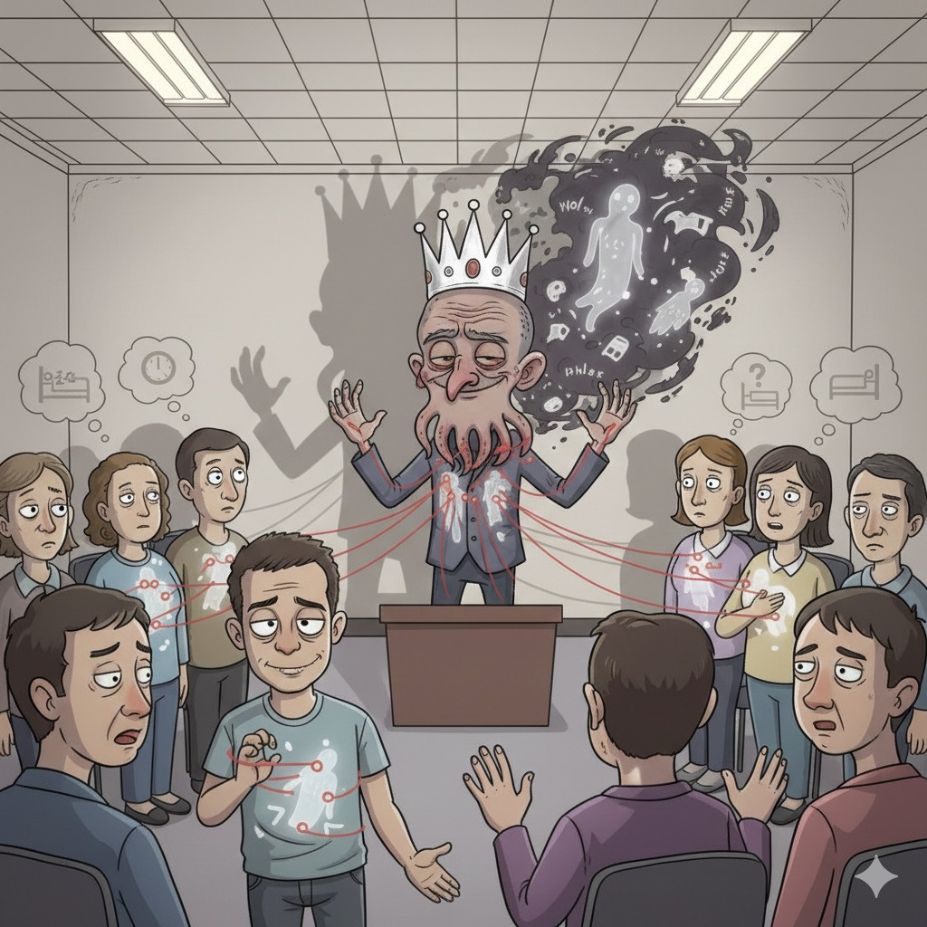 나는 이런 이들을 ‘허수의 사냥꾼’이라 부른다. 실체 없는 지지를 포획하여 자신의 논거로 삼는 사람들이다. 그들은 실제 투명한 표결을 요구하지 않는다. 대신 모호한 분위기를 근거로 삼는다. “분위기가 다 제 편이잖아요. 회장님도 보셨죠?” 오징어할배의 목소리는 이제 확신을 넘어 오만함으로 가득 찼다. 하지만 그가 본 분위기는 지지가 아니라 대중의 '피로'였을 가능성이 크다. 사람들은 고개를 끄덕이며 회의가 빨리 끝나기만을 바랐다.