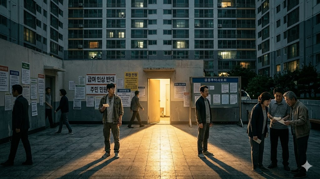 "회장님, 이건 원칙과 법도의 문제입니다! 관리비 1,000원 인상은 입주민에 대한 선전포고이자 배신이에요!" 고리타분 대표가 서류 뭉치를 탁자에 내동댕이치며 소리쳤다. 그의 목소리에는 악의보다 '내 것을 지켜야 한다'는 지독한 결벽이 서려 있었다. 이에 정에스더 대표가 자리를 고쳐 앉으며 차분히 맞받았다. "고 대표님, 인근 단지 급여 현황 좀 보세요. 우리만 3년째 동결이면 유능한 실무자들이 남아 있겠습니까? 이건 단순한 비용 지출이 아니라 우리 아파트라는 자산을 지키는 투자입니다."