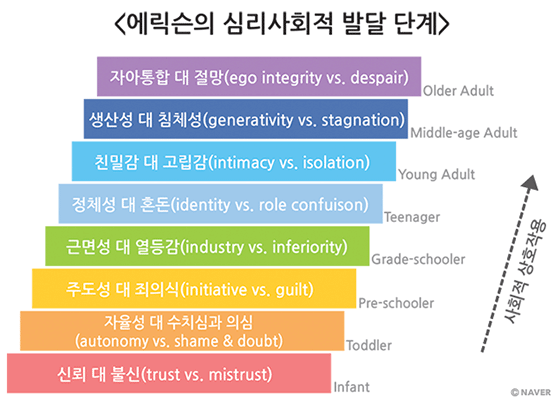 정신분석학자 에릭 에릭슨(Erik H. Erikson, 1902~1994)은 전 생애에 걸친 '심리사회적 발달 이론 8단계'를 제시했다. 8단계 중 마지막 단계인 노년기는 ‘자아 통합(ego integrity)’의 시기이다. 이 시기 개인은 자신의 생애를 돌아보며 한계를 인정하고 삶의 의미를 찾는다. 그 과정에서 자신의 생애가 가치 있었다는 확신을 가질 때 인간은 '자아 통합'을 이룰 수 있다. 하지만 신체적인 노쇠와, 직업 및 친구, 배우자의 상실을 겪고 자신의 삶이 무의미했다는 생각에서 벗어나지 못한 노인은 ‘절망(despair)’에 빠진 채로 삶을 마무리하게 된다.