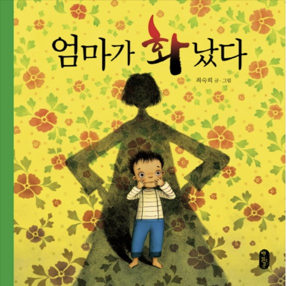 그림책 『엄마가 화났다』(최숙희, 책읽는곰, 2011)는 주인공 산이가 제일 좋아하는 자장면을 손으로 집어 먹는 장면으로 시작한다. 귀퉁이에 검은 그림자로 나타난 엄마는 “또 시작이다, 또!”라며 화를 낸다. 산이가 얼룩덜룩해진 얼굴을 씻다가 욕실을 거품 나라로 만들고 작은 종이 밖 벽과 바닥에도 그림을 그리자, 엄마 입에서는 새까맣고 불같은 화가 쏟아져 나온다. 검은 불길은 점점 커지더니 산이를 삼켜버리고, 산이가 사라지자 엄마는 눈물을 흘리며 원래 모습으로 돌아온다.