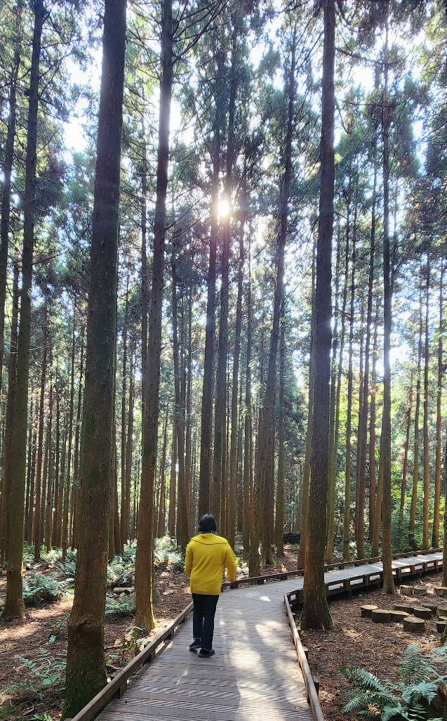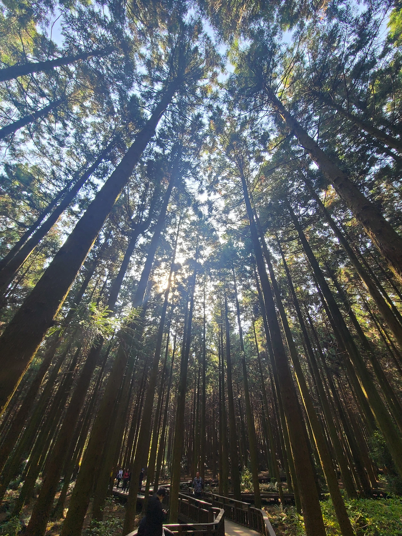 이름처럼 빼곡하게 삼나무가 포개어 감은 이곳은 빽빽한 삼나무뿐만 아니라 졸참나무, 서어나무, 때죽나무, 편백나무 등 다양한 수종이 서식하고 있다고 한다. 나무데크로 산책로가 잘 조성되어 길을 따라 걷다 보면 깊은 숲 속에 초대된 것 같다. 어느새 원시림의 깊은 청량감이 몸 안에 스며들어 내 안의 구석구석이 정화되는 신성한 기분에 푹 빠진다.