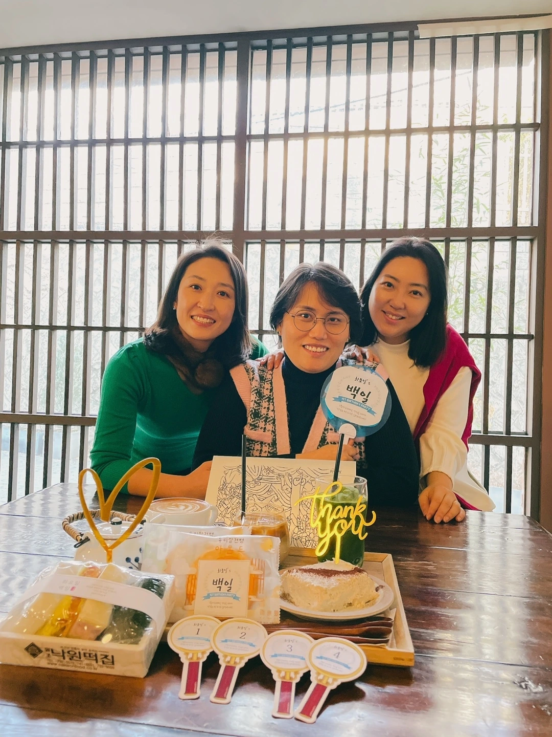 점심을 먹고 삼청동 거리를 산책하다가 볕이 좋은 커피숍에 찾아들어간다. 가방을 열어 주섬주섬 준비한 것들을 꺼내놓으니 너도나도 십시일반 도와 뚝딱 백일상 하나가 떡하니 차려진다. 고맙게도 구독자수가 104명을 기록해서 백. 백. 백일잔치를 할 수 있게 되었다. 천명, 만 명보다 귀한 104명이다. 밤새 고민하고 준비한 식순에 따라 하나씩 진행을 해본다. 다른 사람을 위한 파티, 모두를 위한 파티는 준비해봤지만 나를 위한 파티는 처음이다. 어색하지만 모두의 도움으로 하나씩 해본다. 먼저 "축가 부르기"부터~. 재미로 판은 깔아놓았는데 주인공은 자꾸 부끄러워지는 건 기분 탓이겠지?^^