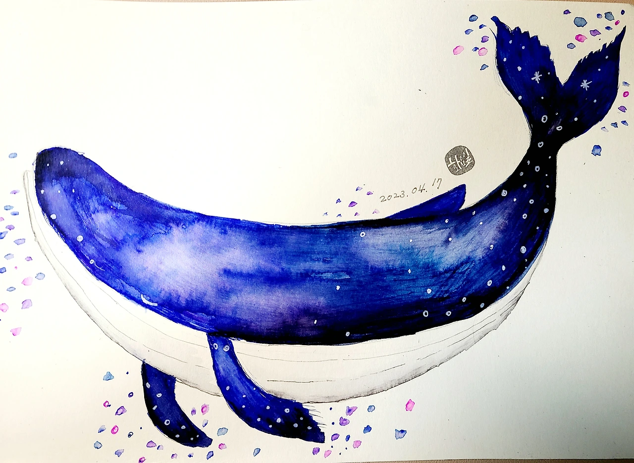 어제는 막내딸과 수채화를 그렸다. 수강신청해 놓은 기간이 얼마 남지 않아 늦은 저녁이지만 부랴부랴 온라인 강의를 듣고 그림을 그린다. 오늘 그린 그림은 고래. 깊은 바다속에서 길고 깊은 숨을 쉬며 느리고 큰 몸짓으로 유유하게 헤엄치는 고래의 모습을 상상하며 그려본다.