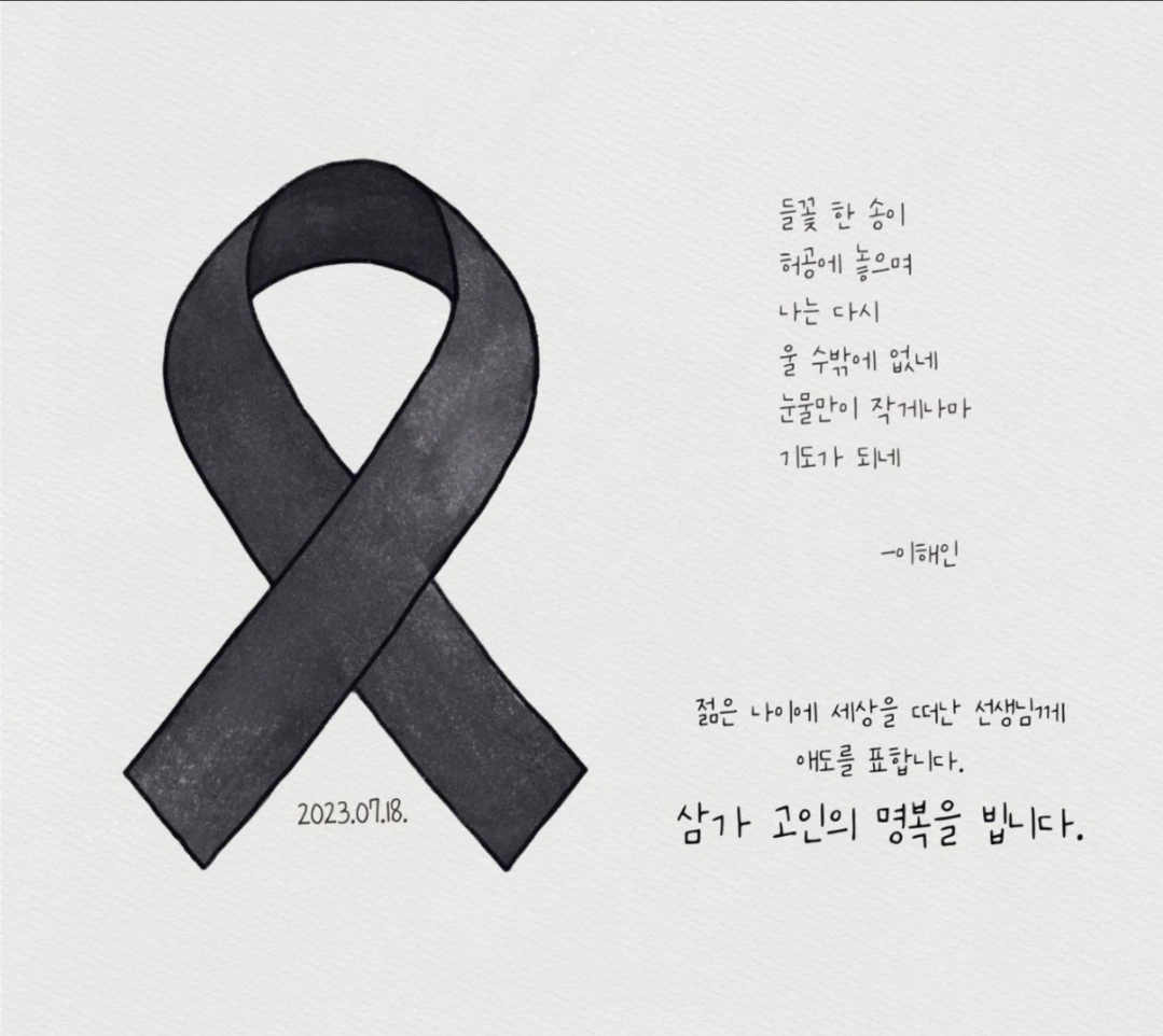 행복한 교사가 있어야 행복한 아이도 학교도 교육도 가능합니다. 선생님에게 힘을 주시고 응원해 주세요. 그리고 고인이 된 선생님께도 심심한 애도를 표합니다. 부디 그곳에서는 편안하시길...
