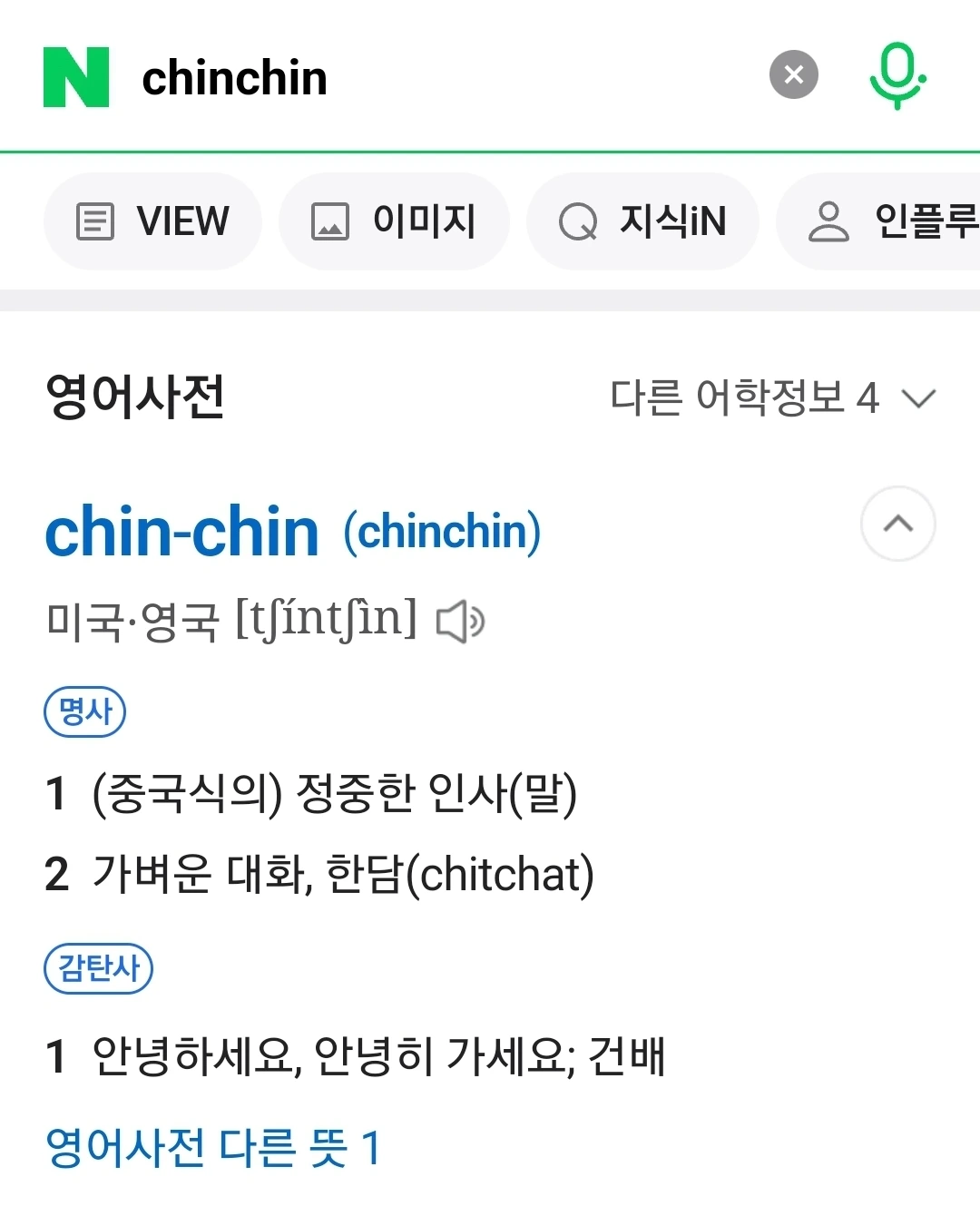 앞글자만 따면C.H.I.N 친친의 영문명이 탄생한다. 마침 'chin chin'이라는 영어 단어도 있어 뜻을 보니 안성맞춤이다.