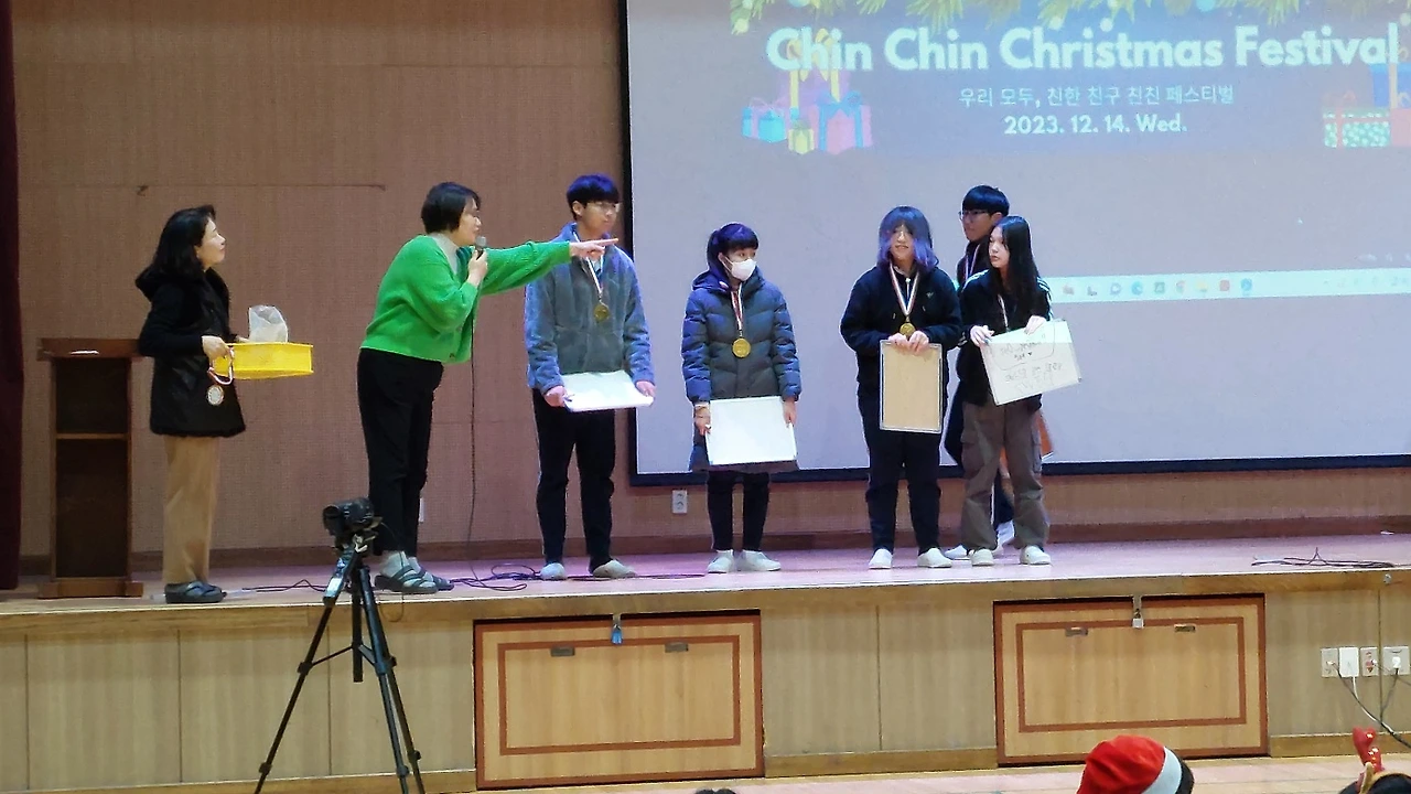 물론 마이크가 무선이고 조명이 더 화려하고 음향이 잘 지원되었더라면 훨씬 더 좋았을 것이다. 하지만 그건 바람이고 아쉬움일 뿐, 그럼에도 불구하고 아이들은 열심히 참여했고 또 즐겼다. 완벽함을 추구하자면 끝도 없는 일이 되겠지만 우리들이 참여하고 만들어 가는데 집중하면 사소한 실수는 웃음이 되고 재미가 된다. 대장정의 친친 프로젝트는 어설픔 속에 우리만의 소중한 추억이 되었음에 만족했다. 서로에게 기꺼이 박수를 쳐주고 엄지 척하며 우리만의 시간을 즐겼다. 이것이 생생한 ' Carpe diem!'의 현장이 아닐까.