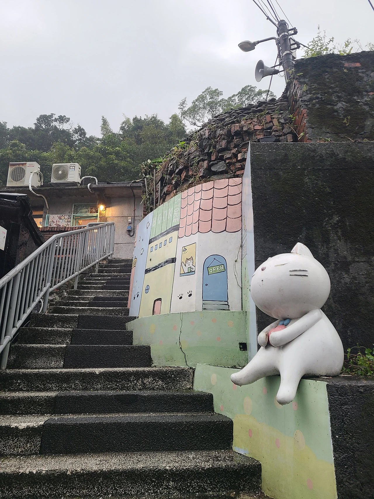 굽이굽이 오르막길을 오르고 낡은 기차역을 지나고 작은 상점을 지나는데 고양이 마을답게 귀여운 그림과 가게들이 눈에 들어온다. 어느새 마음이 놓이고 푸근해진다.