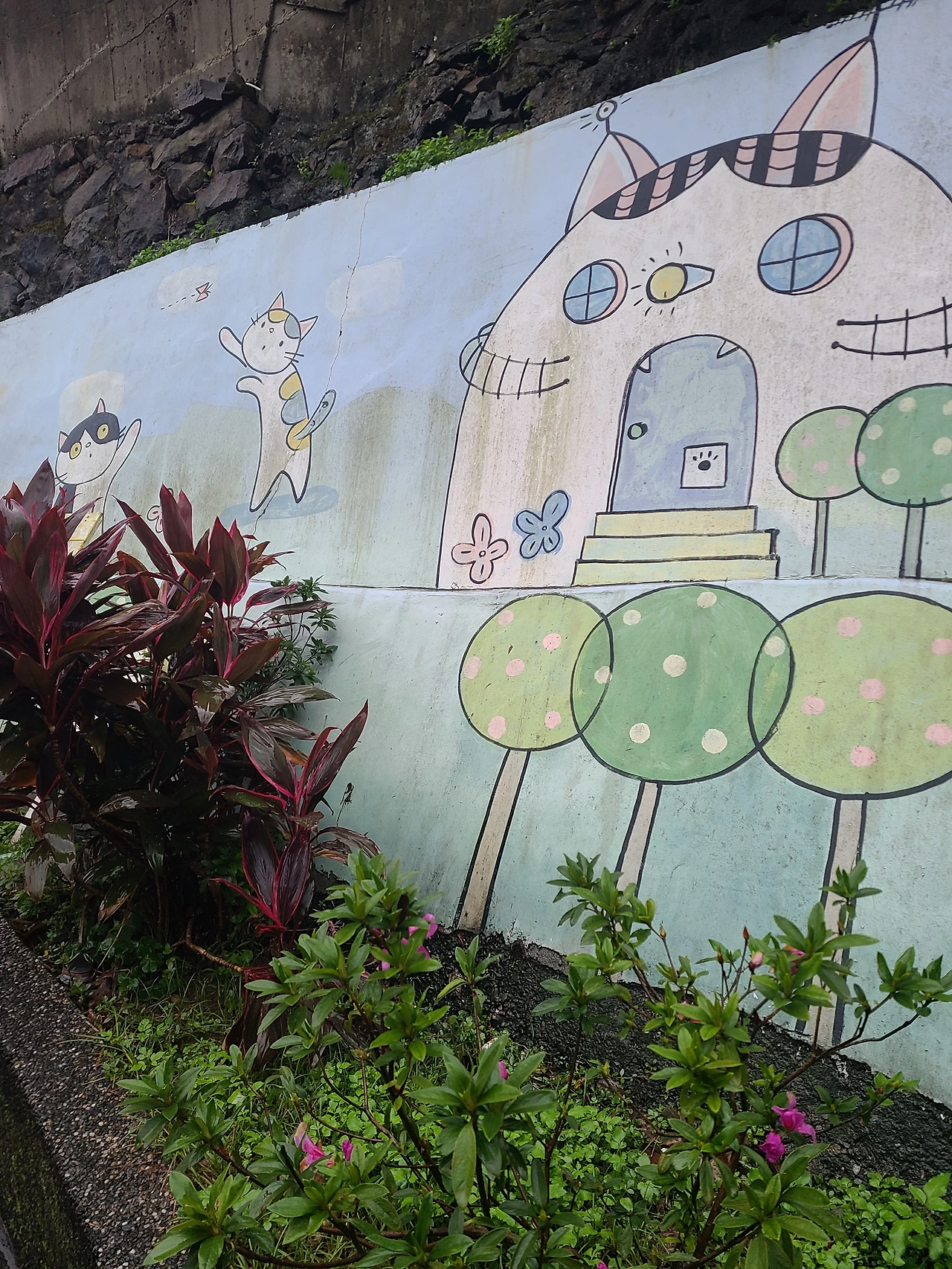 초록초록한 식물들이 물기를 가득 머금고 고양이 캐릭터가 문 앞을 지켜주고 벽과 공간을 채운다. 이렇게 꾸며놓으니 보기만 해도 따스함이 전해진다. 골목골목을 탐험하듯 구경에 나선다. 왠지 고양이 마을의 비밀을 하나씩 훔쳐보는 기분이랄까.