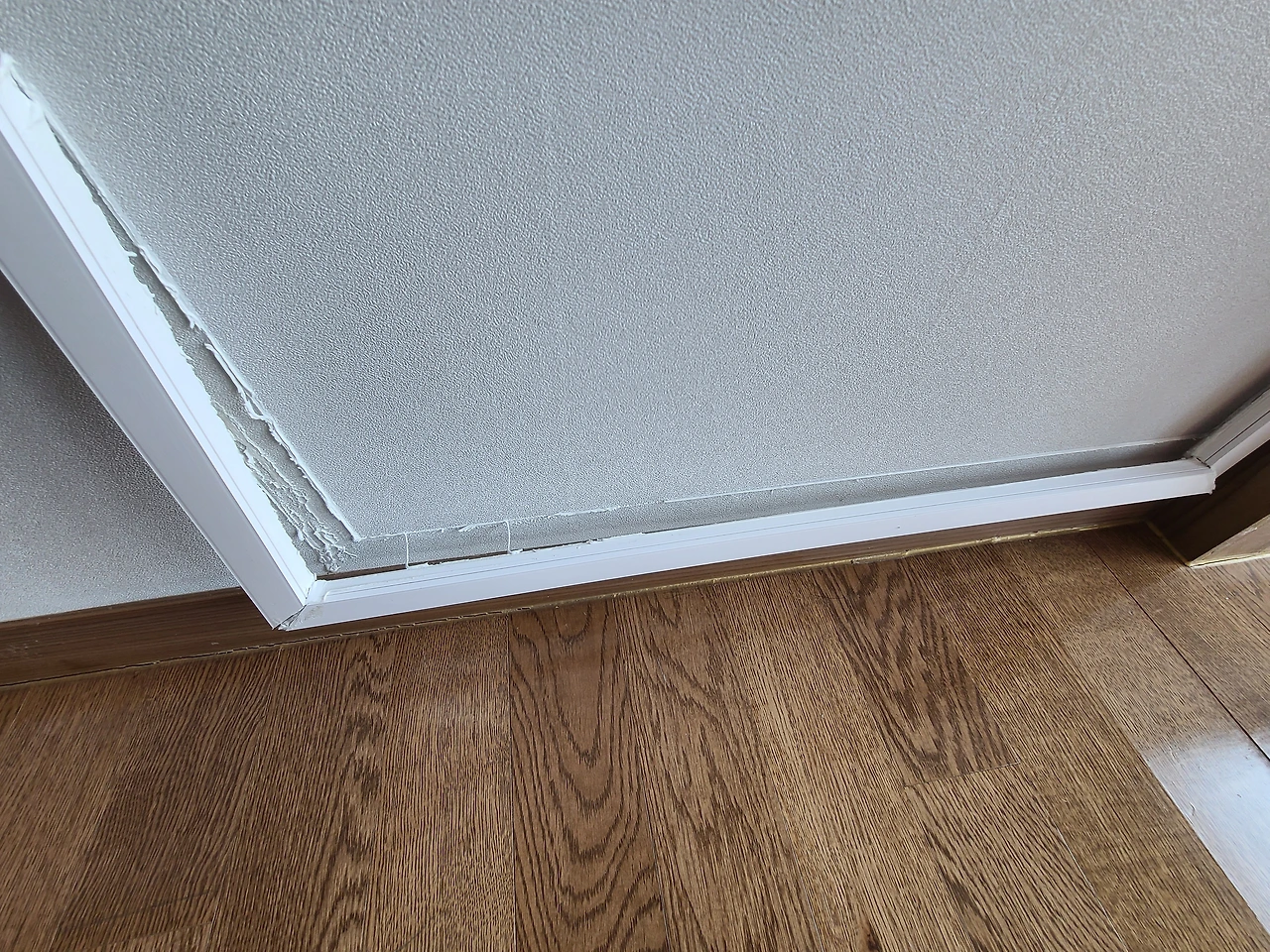 "저기요. 복도장에 구멍이 나고 밴드가 붙여져 있는데요. 어찌 된 일인가요?"