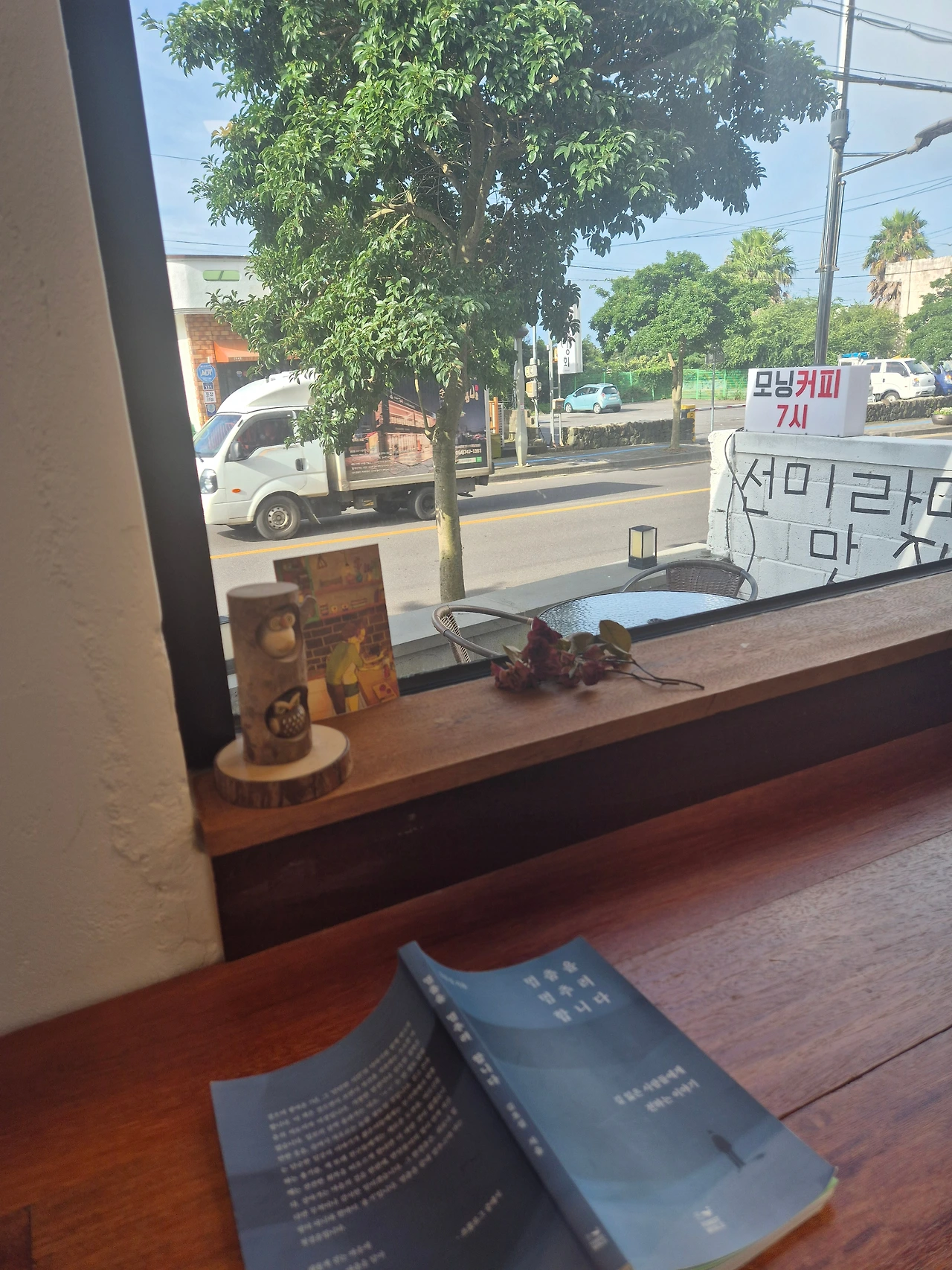제주여행의 끝자락, 체크아웃 시간을 앞두고 마지막 여정인 숙소 앞 커피숍을 찾는다. 24시간이 모자라게 열심히 살아가는 호섭작가님은 '선미언니'라는 별명을 얻었다. 그를 닮은 노래, 가수 선미의 <24시간이 모자라>에서 따온 별명이라고. 마침 숙소 앞 '선미다방'이라는간판이 보여 반갑게 찾아간다. 책의 마지막 챕터를 읽을 때라 장소도 타이밍도 굿이다. 나도 24시간이 모자랄 정도로 잘 살고 있나?! 왠지 그 부지런함은 따라갈 자신이 없다.