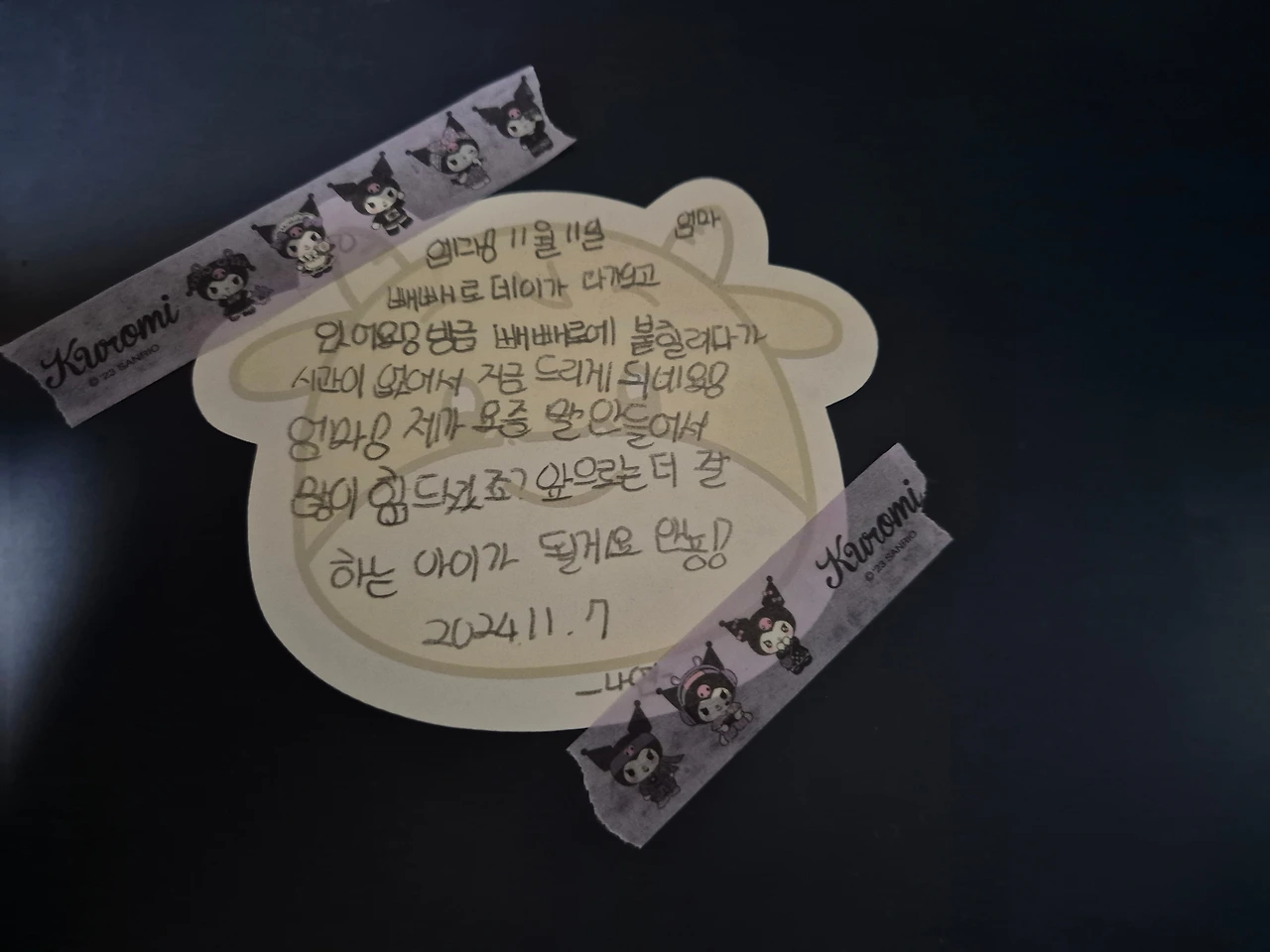 한 주 용돈 5,000 원으로 엄마에게 줄 빼빼로를 산 막내, 힘없는 엄마 목소리를 알아채고 왜 그러냐고 무슨 일이냐고 묻는 아들, 엄마의 취향을 기억하고 초콜릿을 사서 몰래 냉장고에 넣어둔 큰 딸. 아직 작고 부족하지만 그 자체로는 꽉 찬 마음을 전하는 아이들의 마음이 곱다.