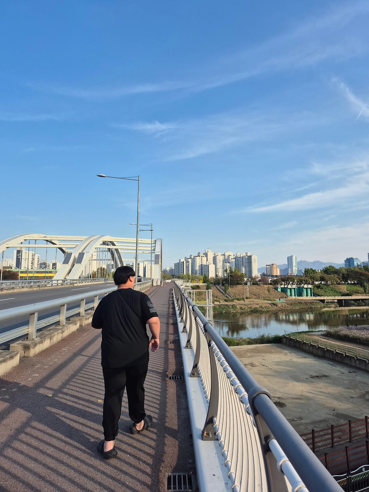 아들은 아들대로 걷고 나는 나대로 걷는다. 각자 듣고 싶은 음악을 찾아 듣는다. 나는 사 차선 도로의 소음을 방패 삼아 목청껏 노래도 부른다. 가사에 심취해 손짓 발짓에 리듬까지 맞추며춤추듯 걷는다. 아들은 그런 내가 창피하다고 소리 한번 지를 법도 한데 그저 말없이 걷기만 한다. 방해하지 않으려는 듯, 서로의 시간을 존중해 주려는 듯, 훌쩍 큰 아들의 그림자가 오늘따라 길다.