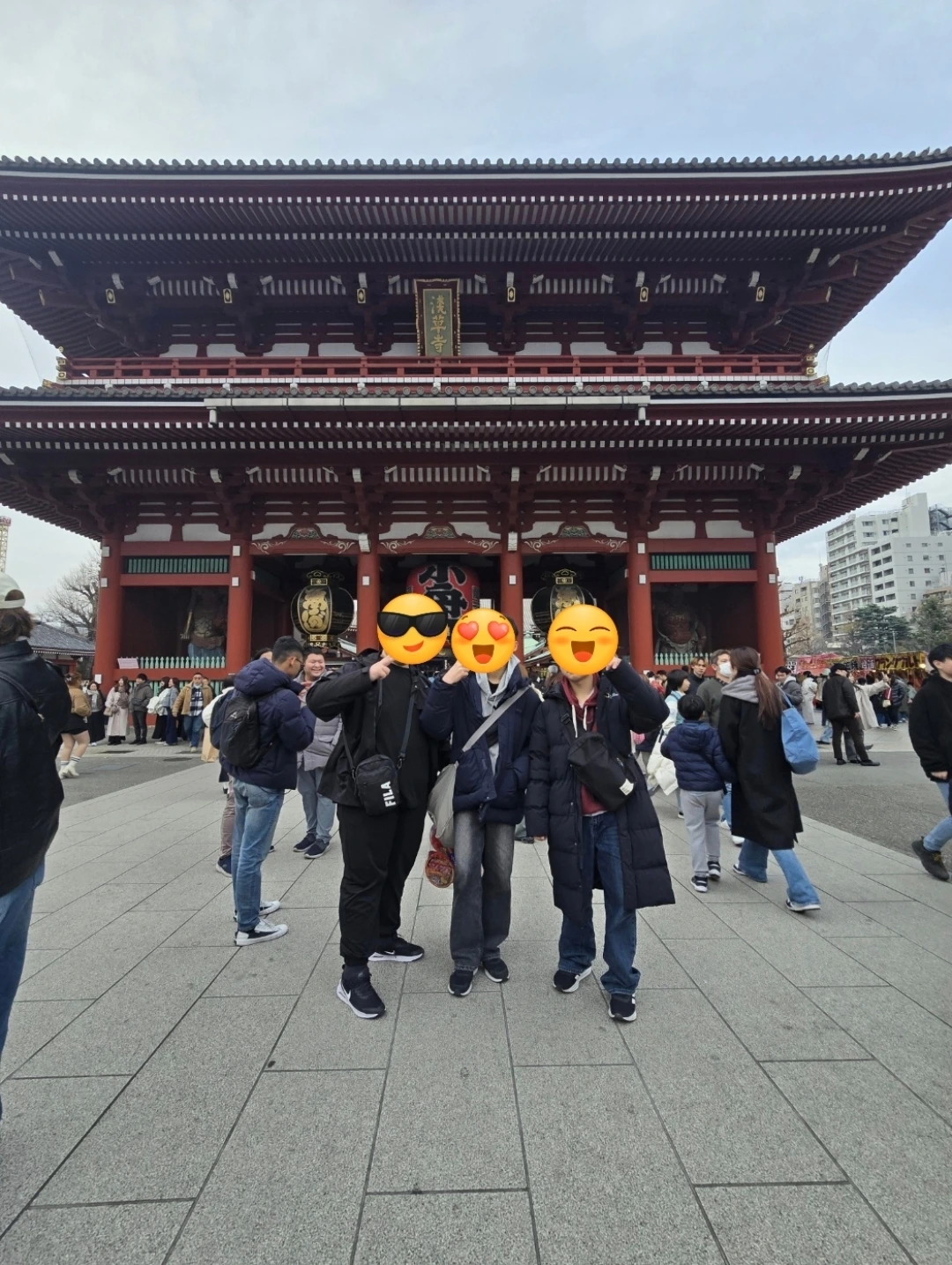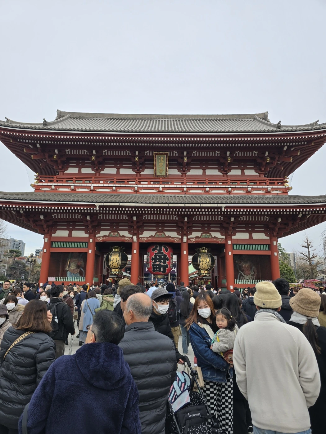 2박 3일 짧은 일정의 마지막 반나절 일정은 숙소 근처의 센소지다. 그곳은 도쿄 안에서 가장 오래된 절이라고 한다. 야무지게 짐을 싸서 숙소에 맡기고 가벼운 발걸음으로 목적지로 향한다. 마침 성인의 날이라 절 앞은 아침시간인데도 북적인다. 골목 양쪽에는 먹거리며 기념품을 파는 가게들이 즐비하다. 재밌는 물건들을 구경하며 걸으니 너무 재밌다. 인파를 헤치고 절에 도착하니 수많은 인파 속에서 기모노를 입고 젊은 사람들, 소원을 빌고 참배하는 사람들도 보인다. 신기한 것은 이렇게 많은 군중들이 모이는 행사임에도 거리가 너무 깨끗하다는 것이다. 바닥에 휴지가 나뒹굴거나 그 흔한 전단지도 보이지 않는다. 일본을 직접 경험한 것이 며칠 되지는 않지만 남에게 절대로 피해를 끼치지 않고 깔끔한 일본인의 성향이 인상 깊었다. 문득, 이런 국민성을 가지면서도 우리에게 보인 잔혹한 역사적 만행이 아이러니처럼 느껴진다.